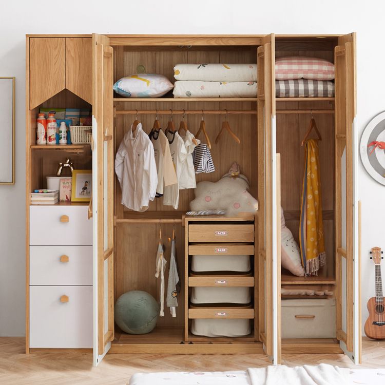 Light Wood Armoire Cabinet Modern Solid Wood Wardrobe Armoire