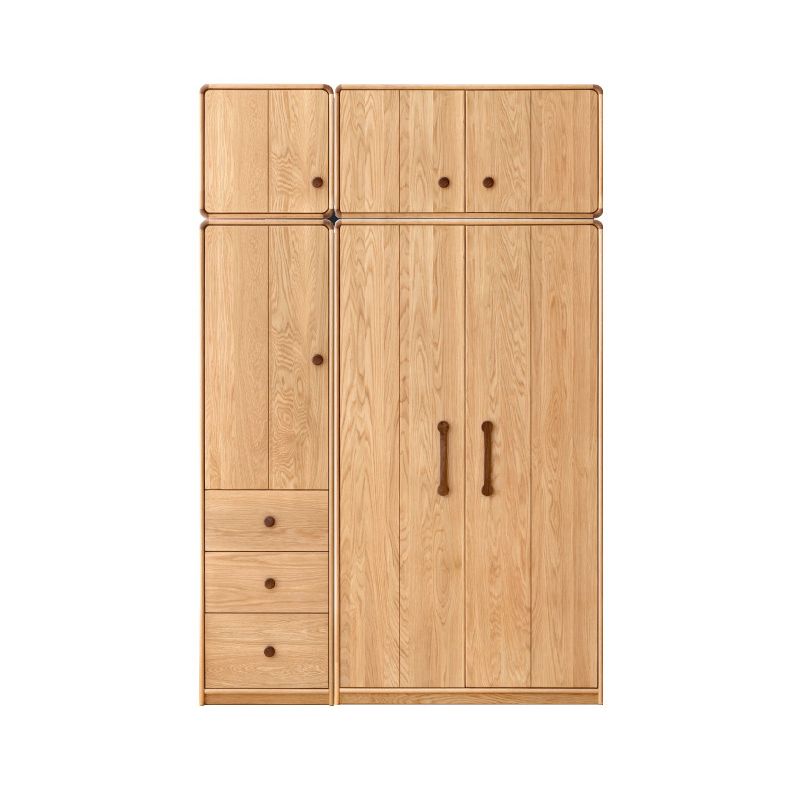 Light Wood Solid Wood with Drawer Shelved with Garment Rod Wardrobe Armoire