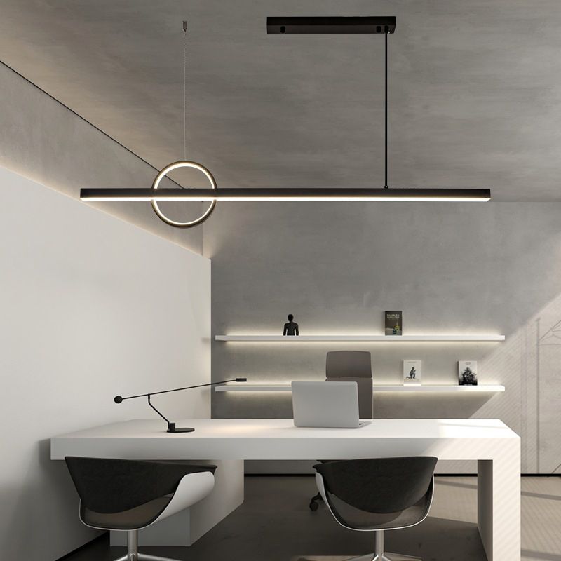 Linear Hanging Island Lights Modern Metal Chandelier Light in Black for Dining Room