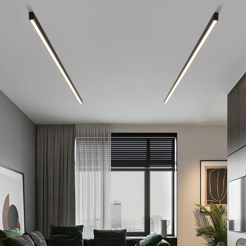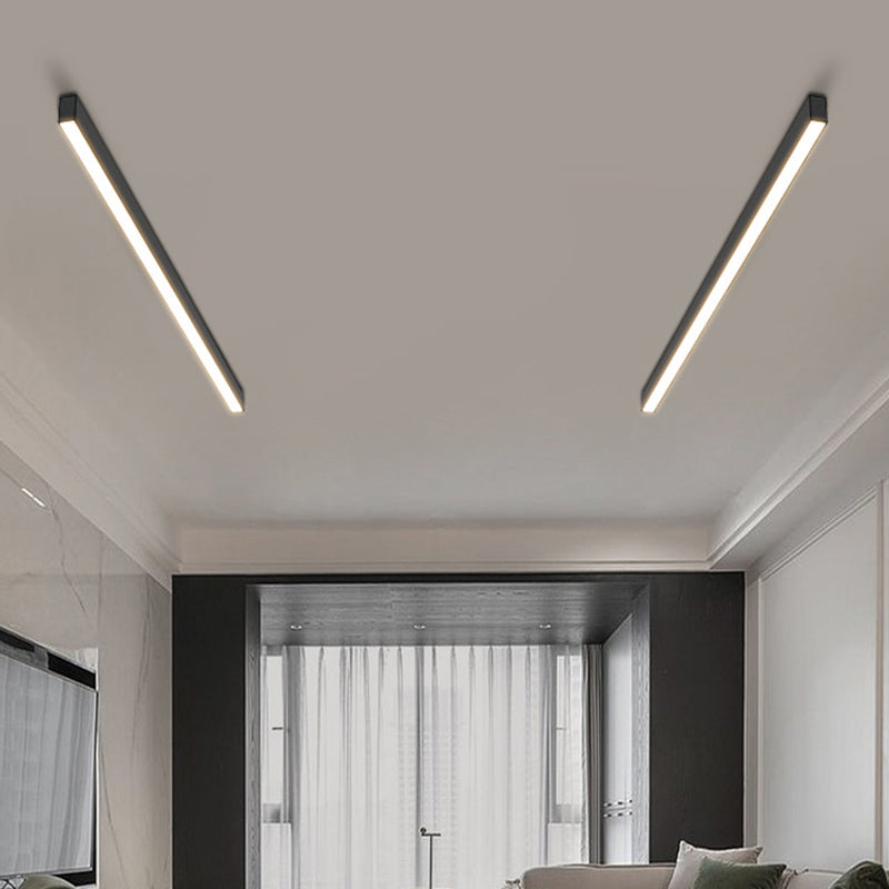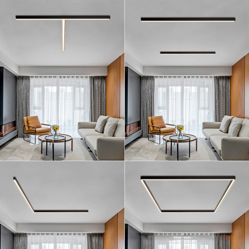 Linear Shape Flush Lights Modern Style Metal 1 Light Flush Mount in Black