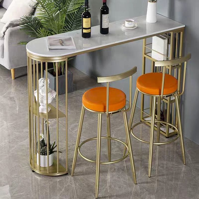 Living Room Counter-height Pub Table Gold Storage Metal Bar Dining Table