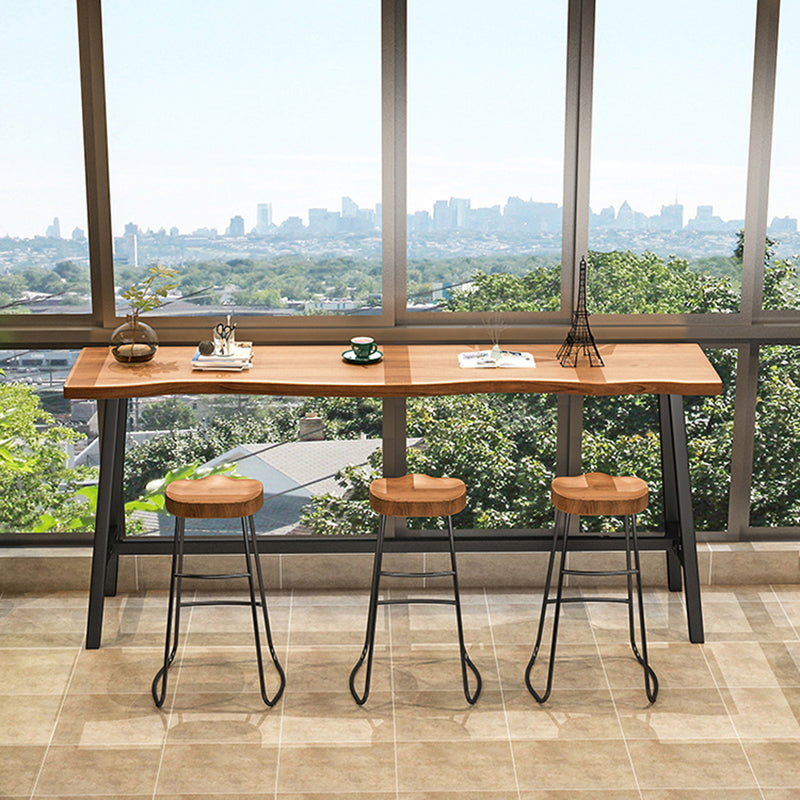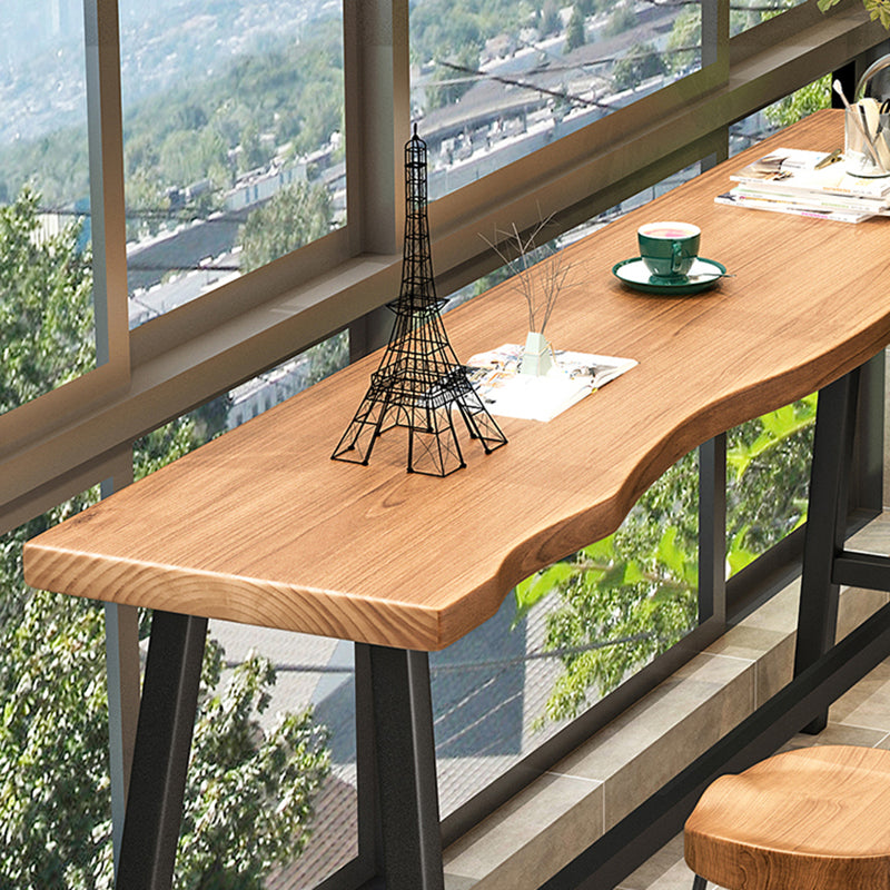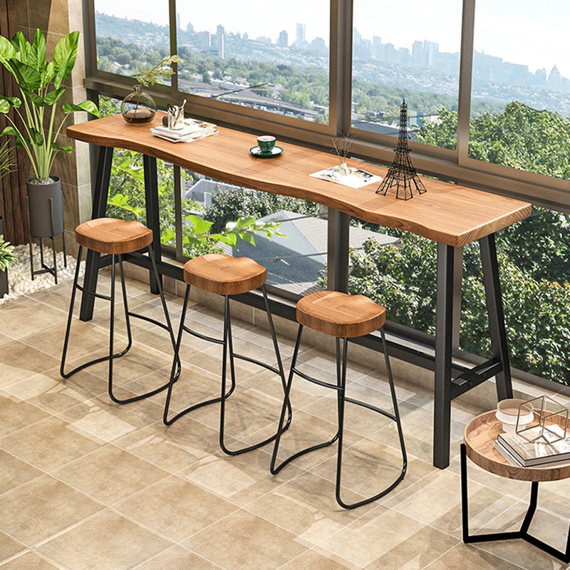 Living Room Modern Patio Bar Table Solid Wood Natural Footrest Bistro Bar Desk