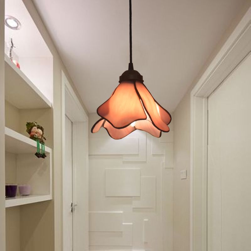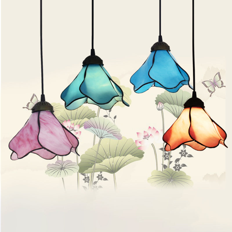 Lotus Stained Glass Pendant Lighting Fixture Tiffany Style Suspended Lighting Fixture