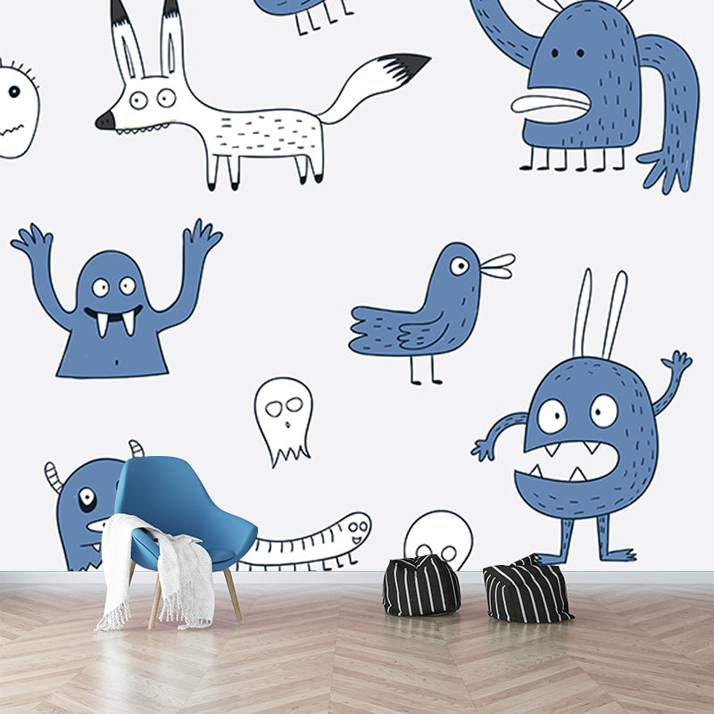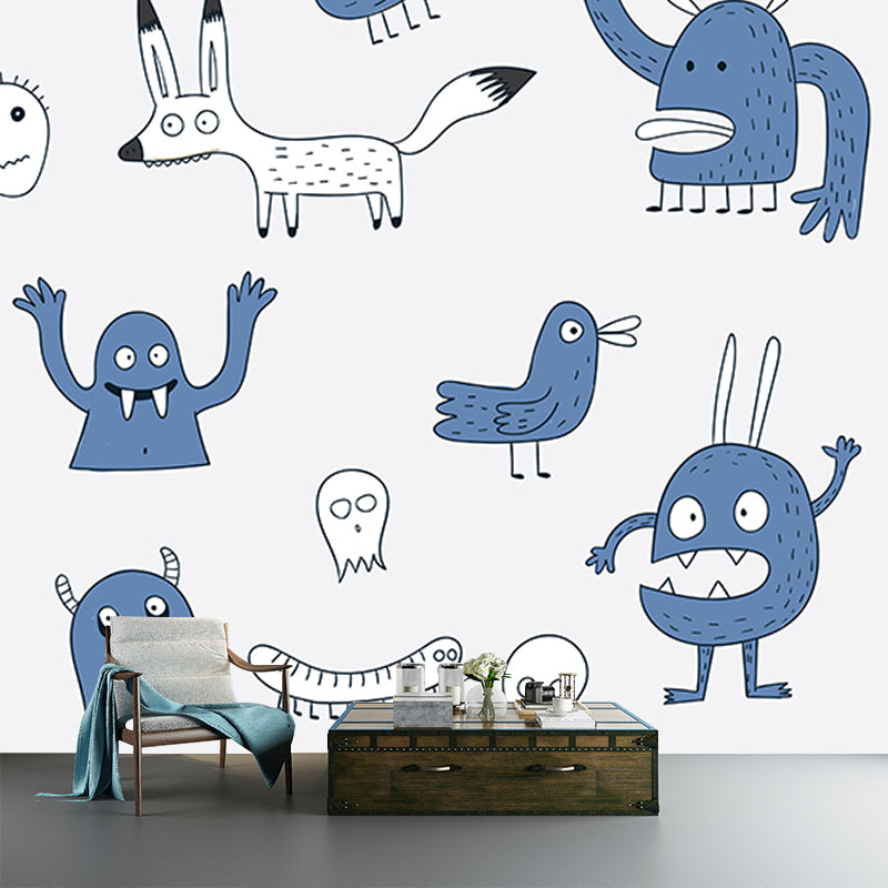 Lovely Illustration Mural Wallpaper Monsters Decorative Indoor Wall Mural