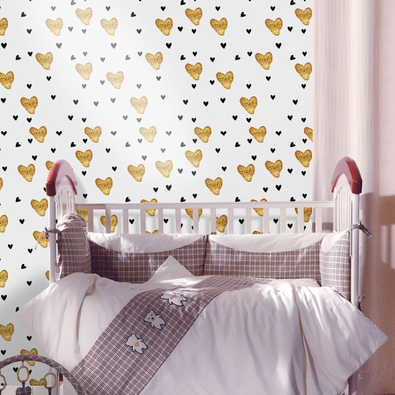 Loving Heart Wallpaper Panels Yellow and Black Kids Style Wall Decor for Playroom, Stick On