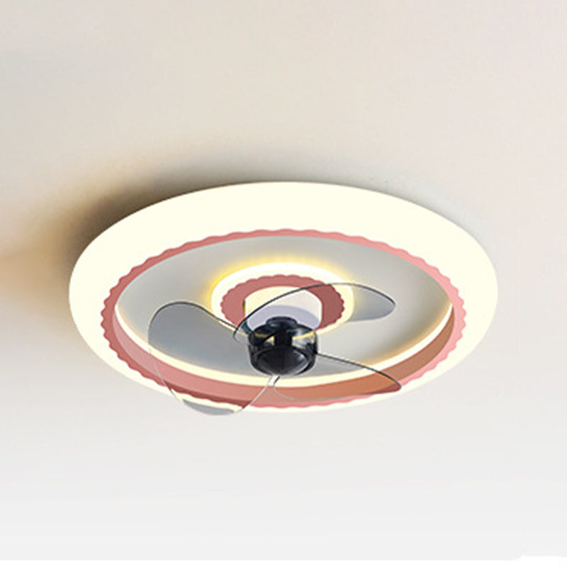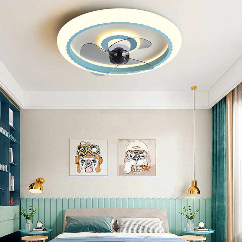 Macaron Round Fan Lighting Fixture Acrylic Children's Bedroom LED Flush Mount Lamp