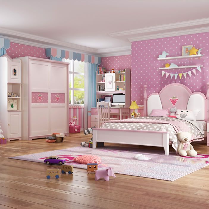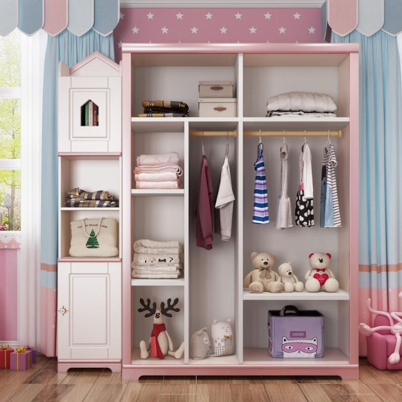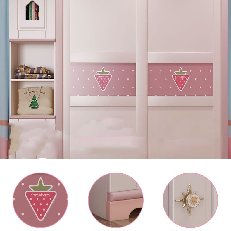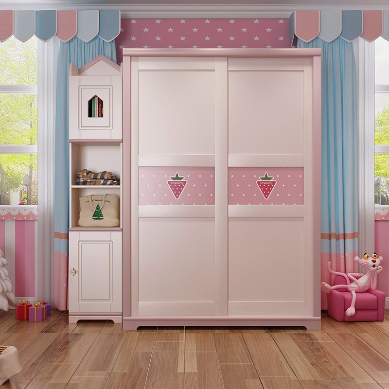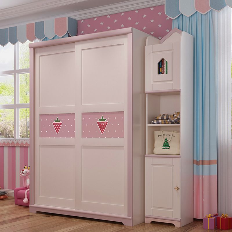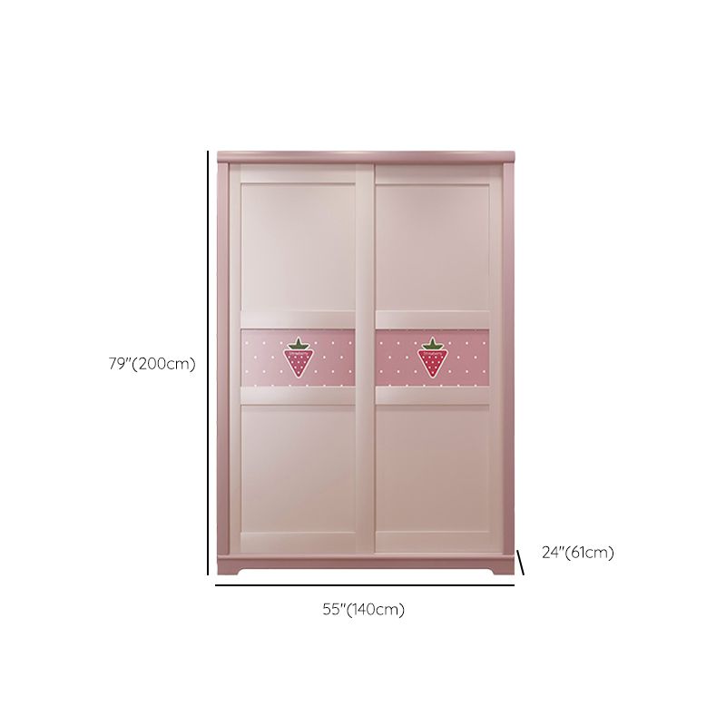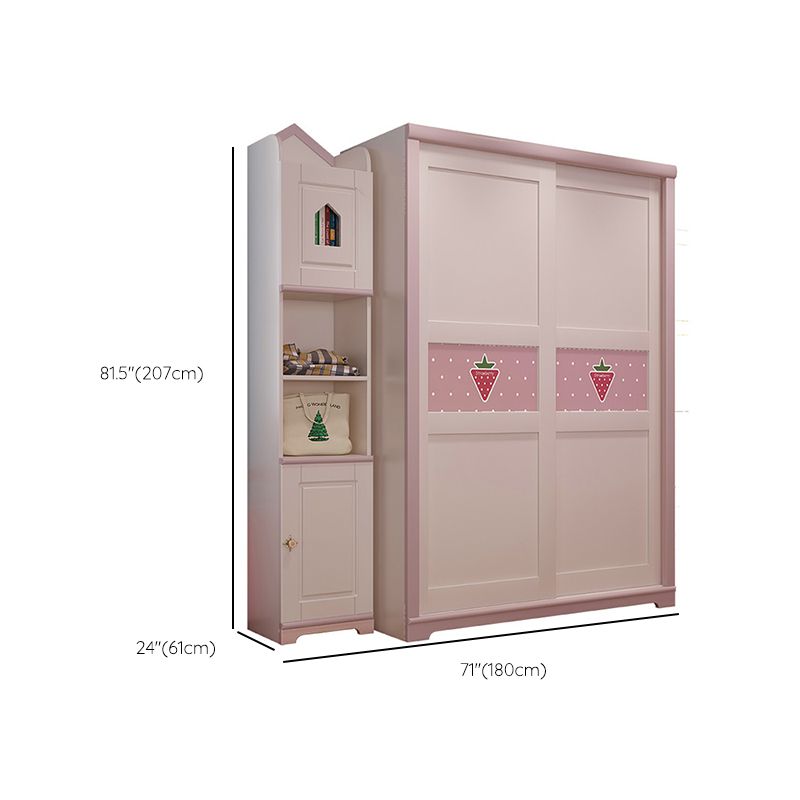 Manufactured Wood Kids Closet Contemporary Pink Wardrobe Closet with Sliding Door