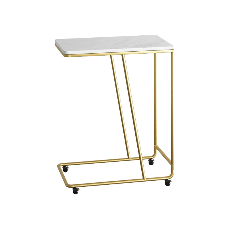 Marble and Metal 23 - Inch Side Table Wheeled Sofa Side Accent Table