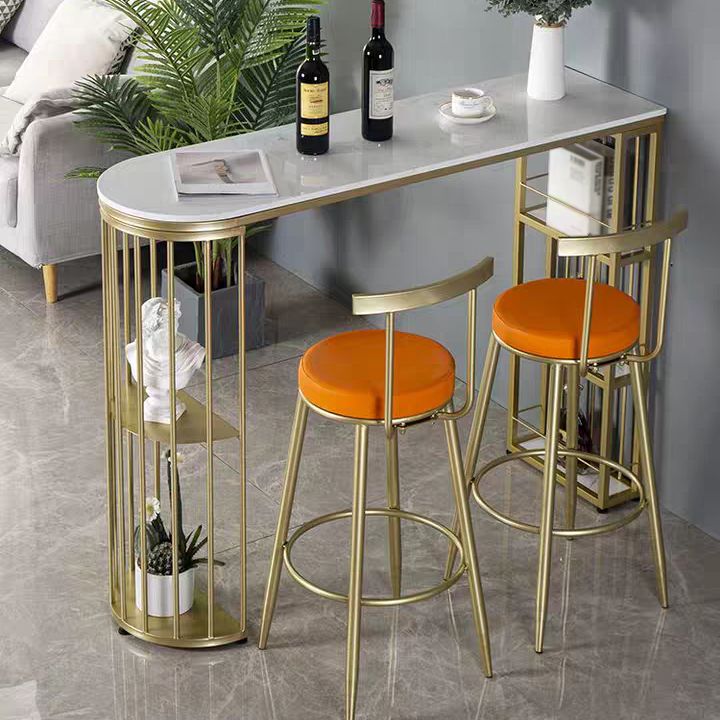 Marble Bistro Bar Desk with Specialty Table Top Double Pedestal Table - 41.3" H
