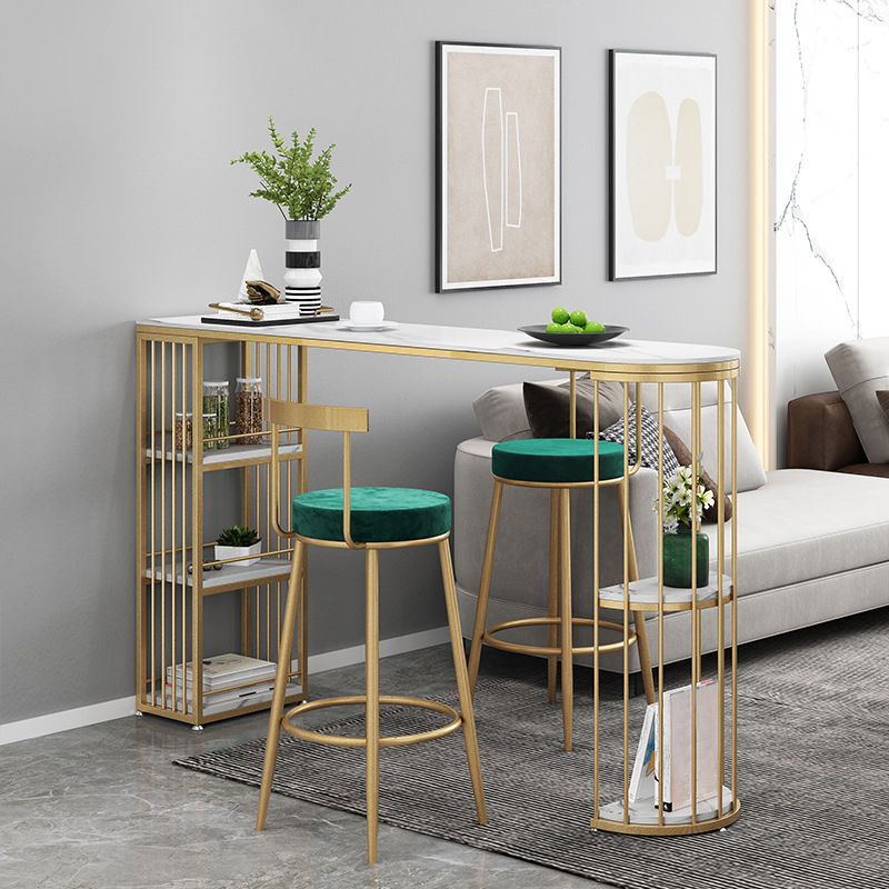 Marble Glam Counter Table with Specialty Top Gold Double Pedestal Table - 42" H