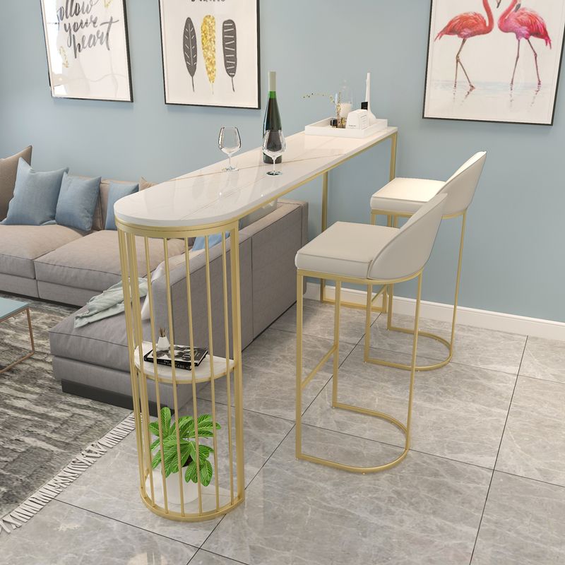 Marble Pub Table with Specialty Table Top Double Pedestal Table- 41.3" H