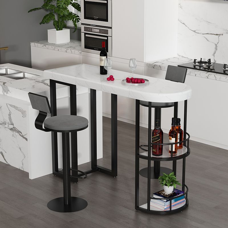 Marble Stone Indoor White Bistro Bar Table Storage Fixed Table Modern Counter Wine Table