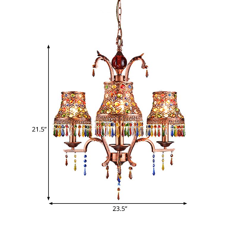 Metal Copper Chandelier Light Fixture Bell 3/5/8 Bulbs Bohemian Ceiling Pendant for Living Room