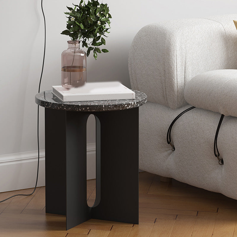 Metal Cross Base Accent Side Table Round Pedestal Living Room Corner Table