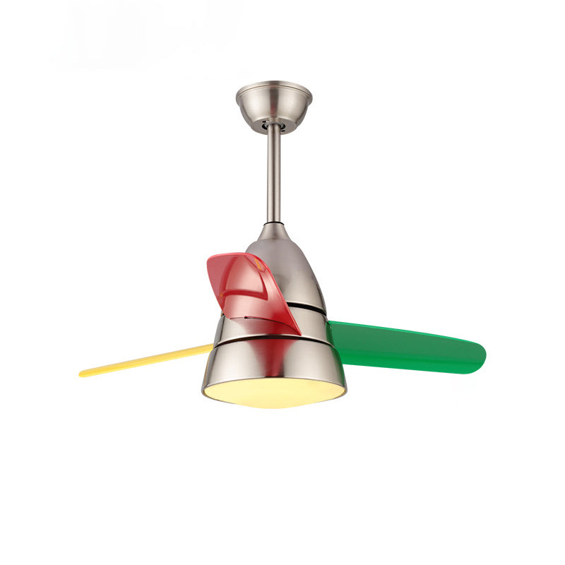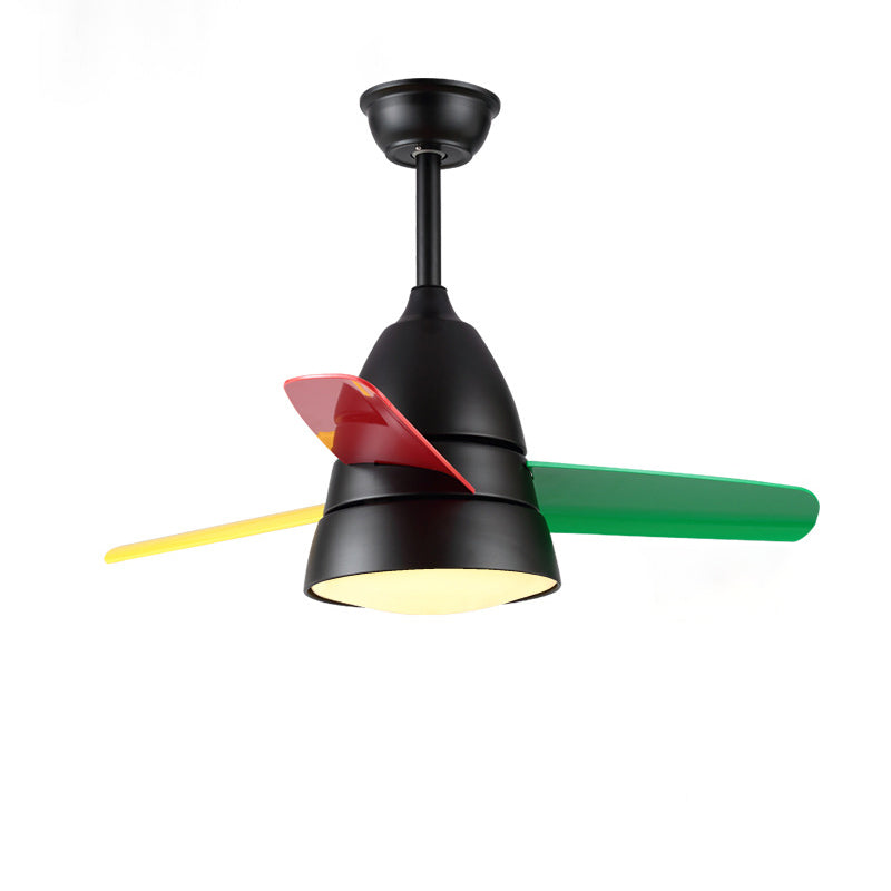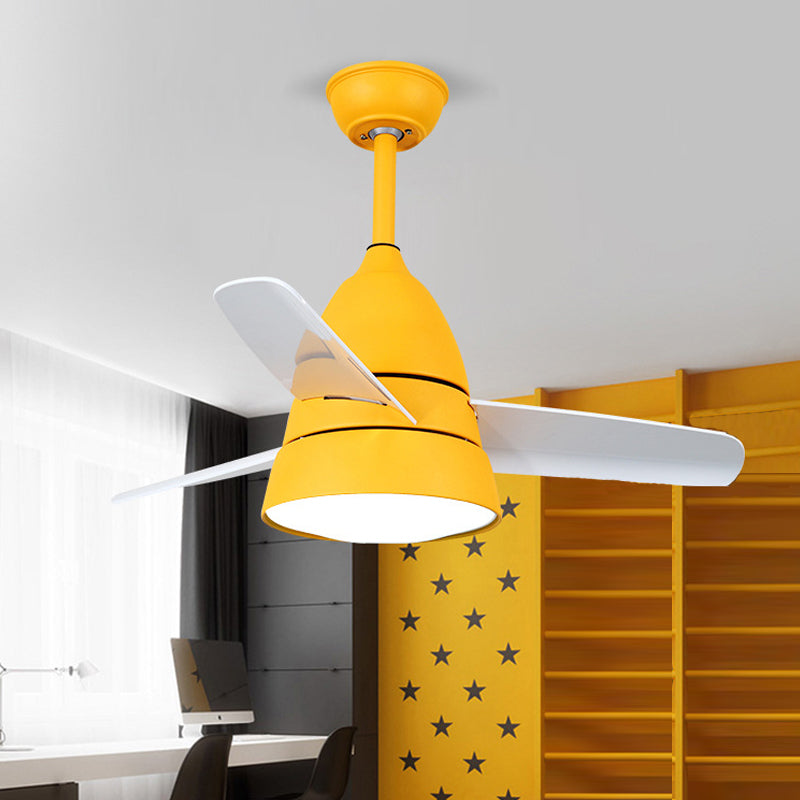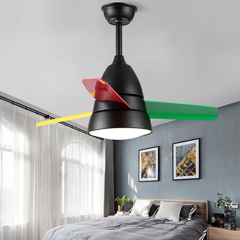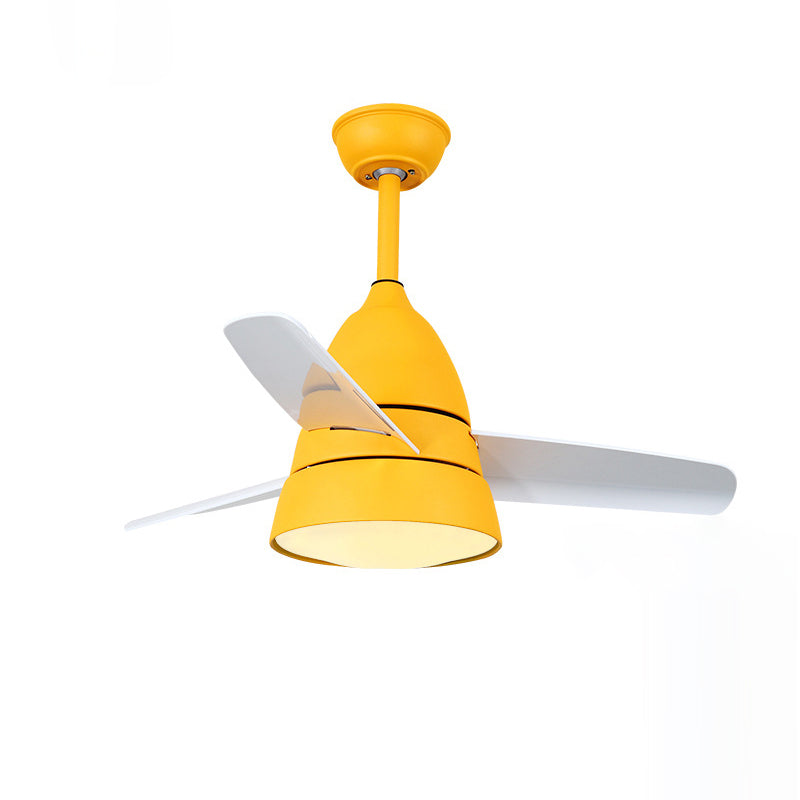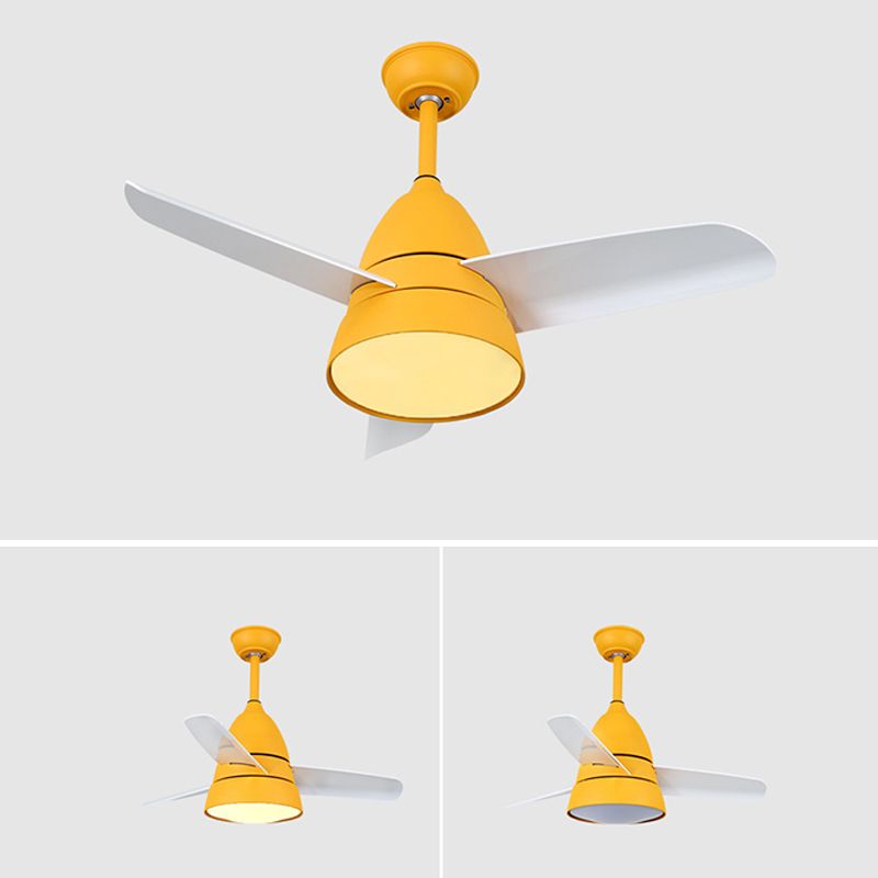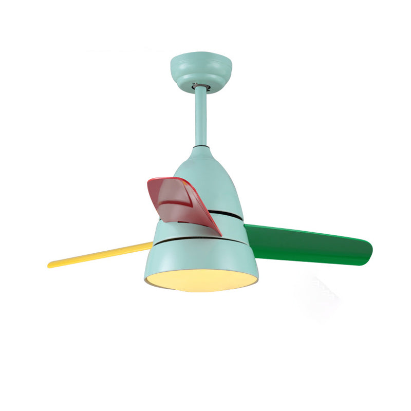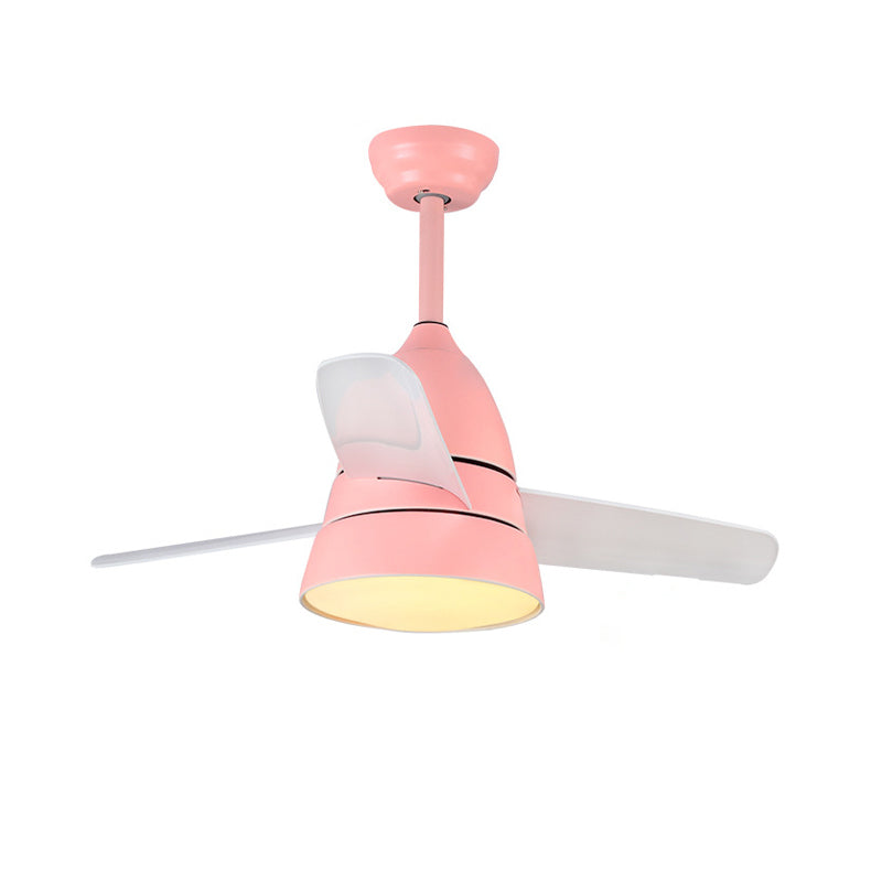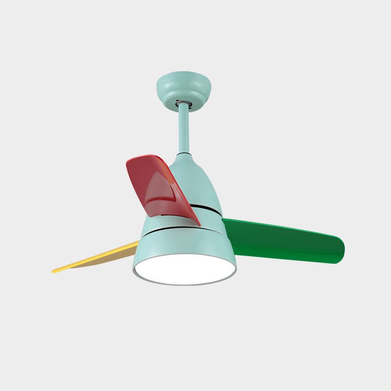 Metal Flush Mount Fan Lamp Macaroon Style LED 3 Gears Ceiling Fan Light for Living Room