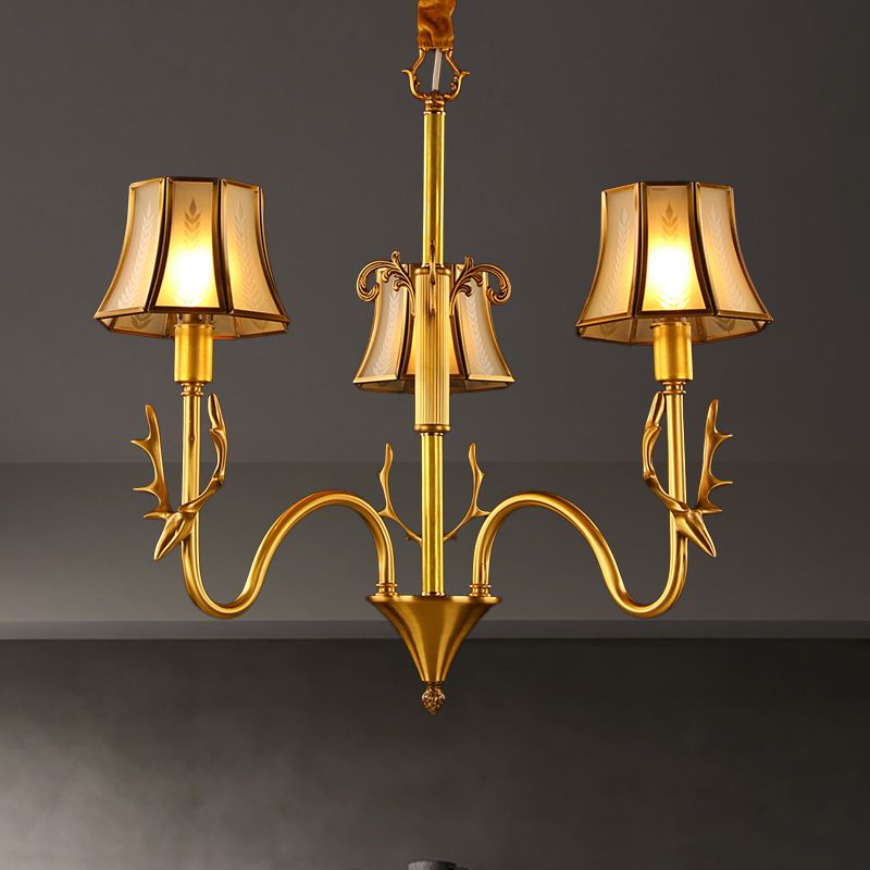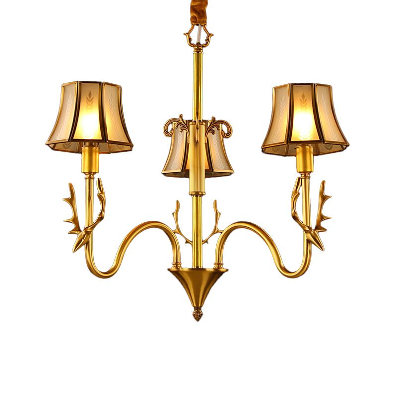 Metal Gold Chandelier Lighting Curved Arm 3/5/6 Lights Colonialist Hanging Lamp Kit