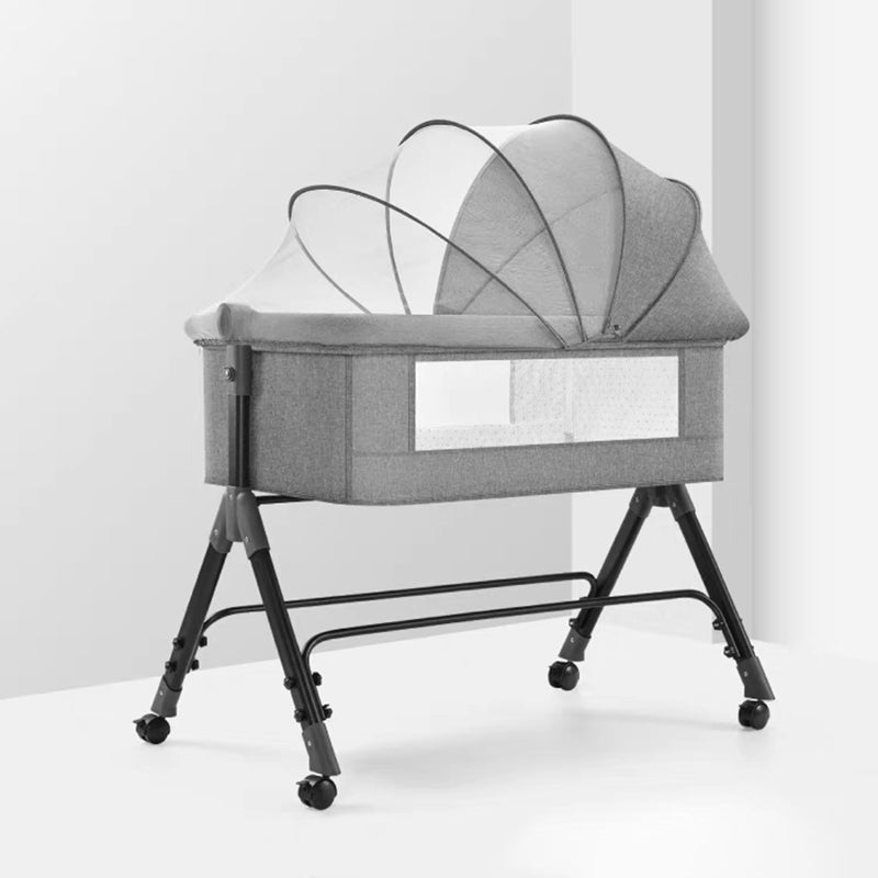 Metal Rectangle Bedside Crib Gliding and Folding Crib Cradle for Baby