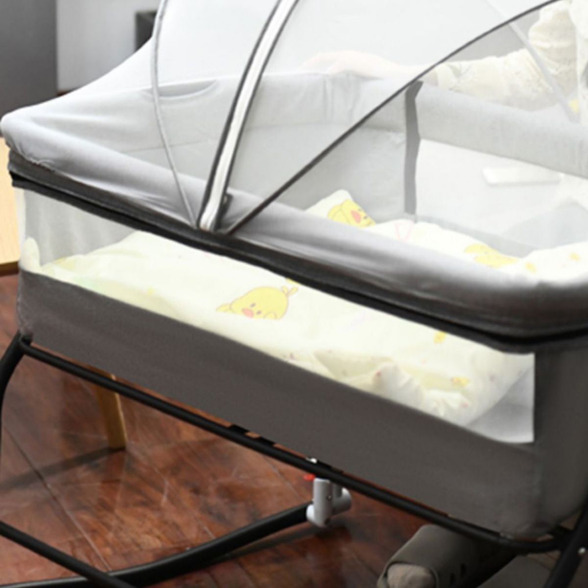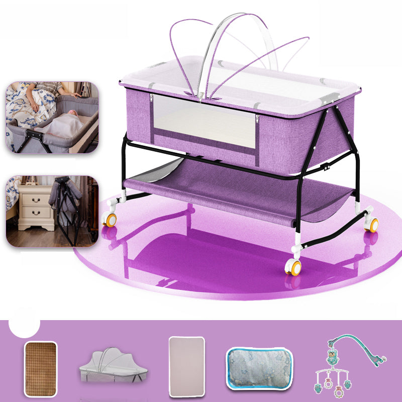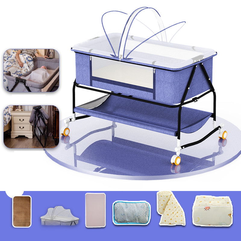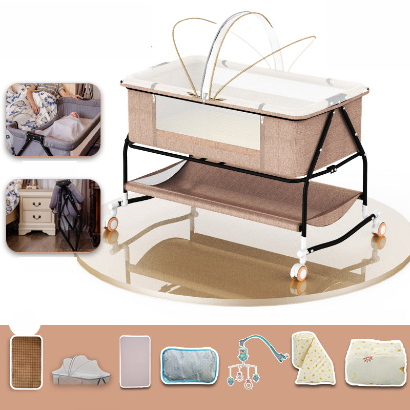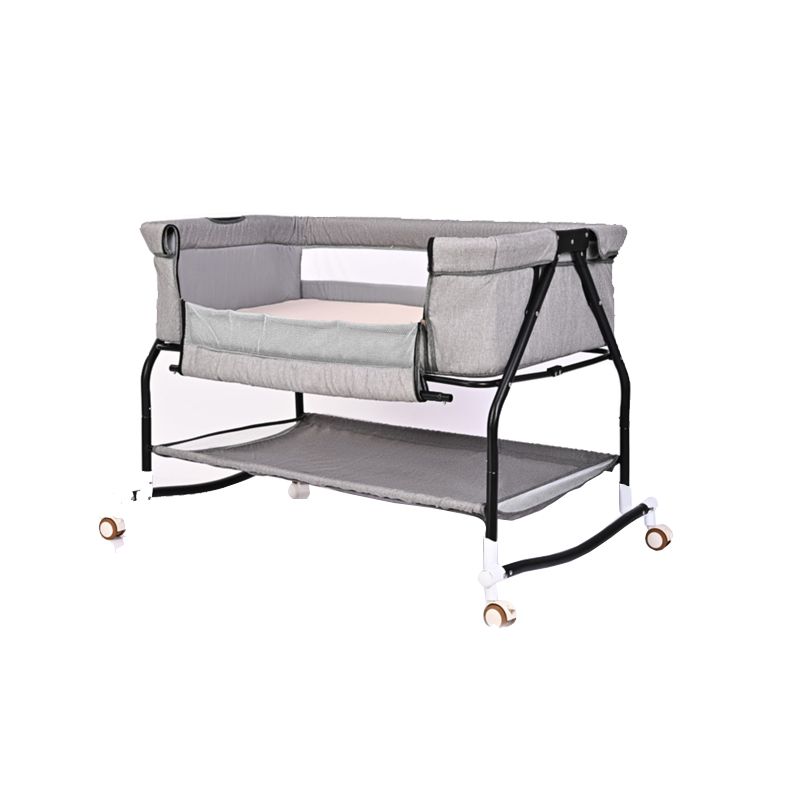 Metal Rectangle Bedside Crib Gliding Folding Crib Cradle for Toddler