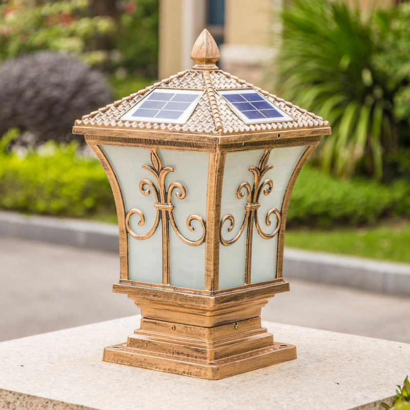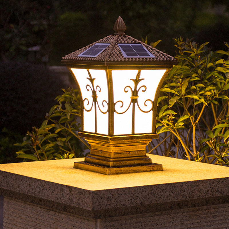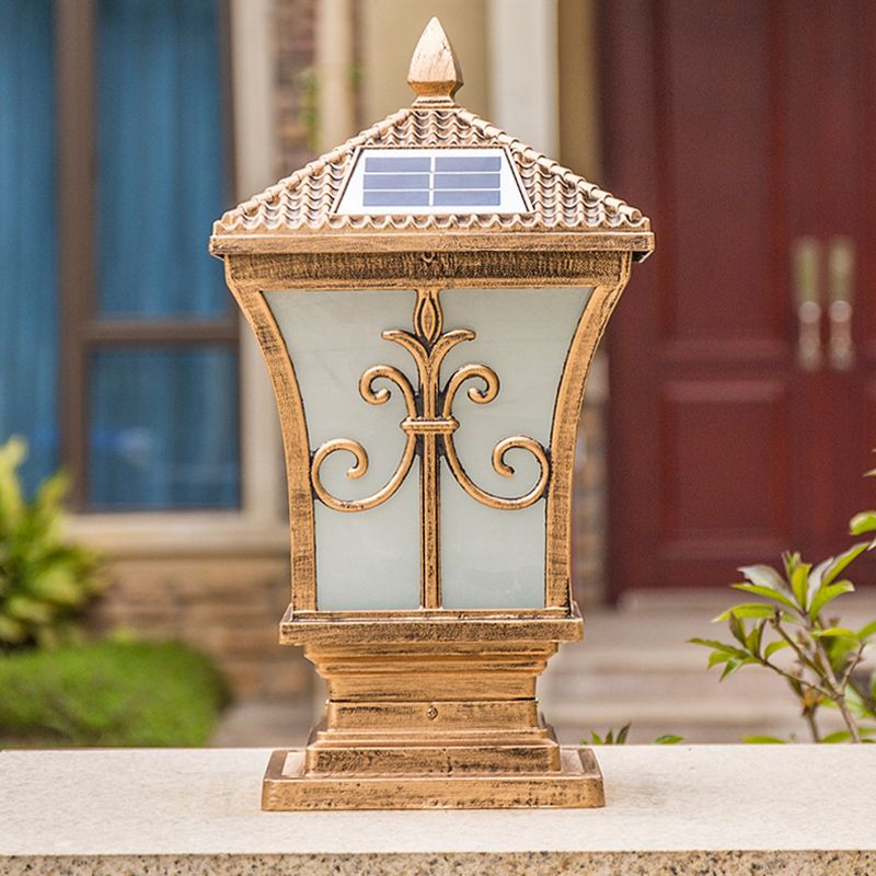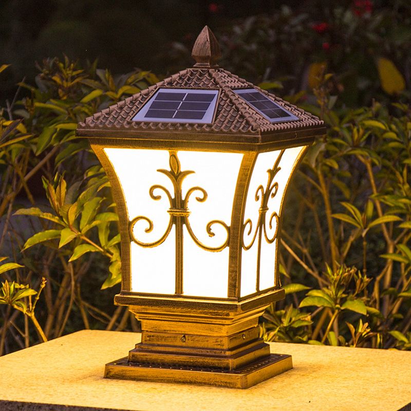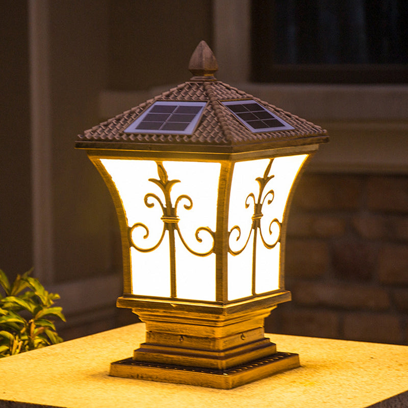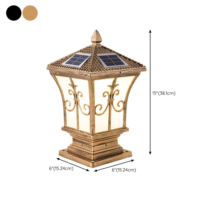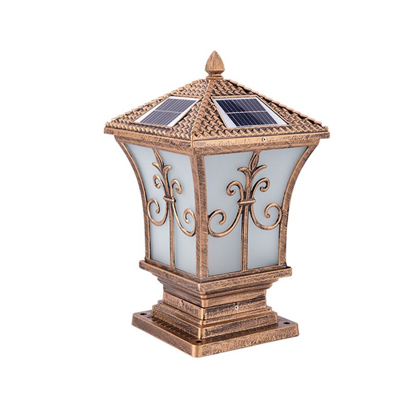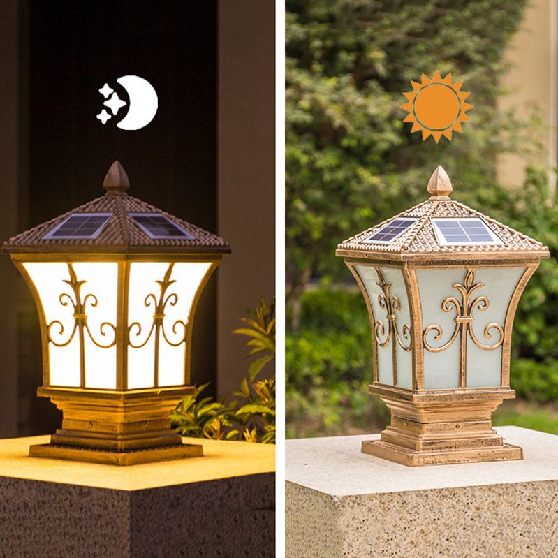 Metal Rectangle Shape Pillar Lamp Modern Style 1 Light Solar Outdoor Light