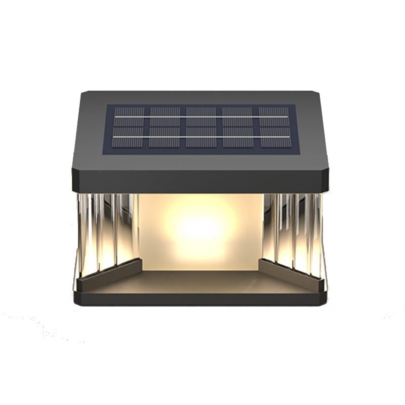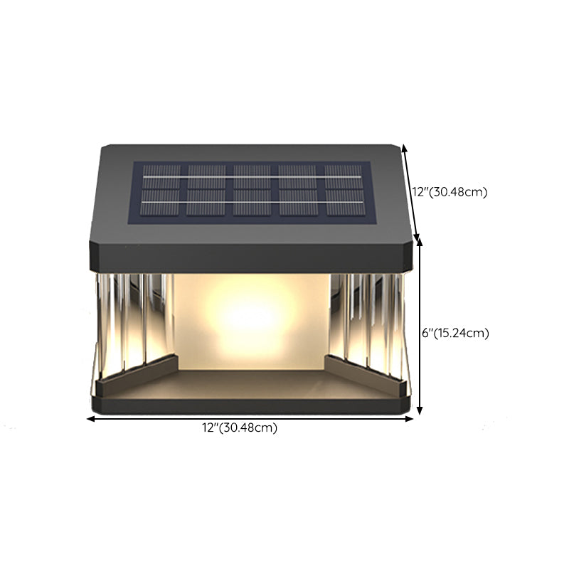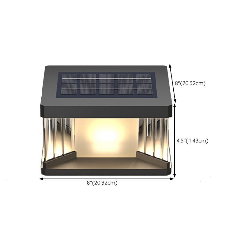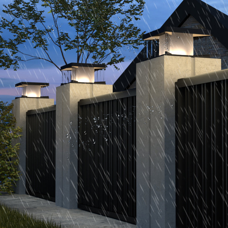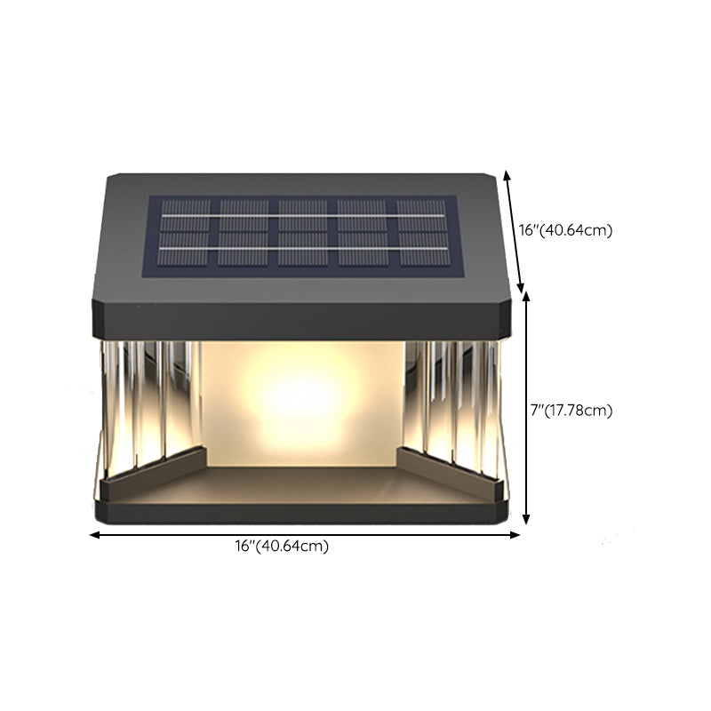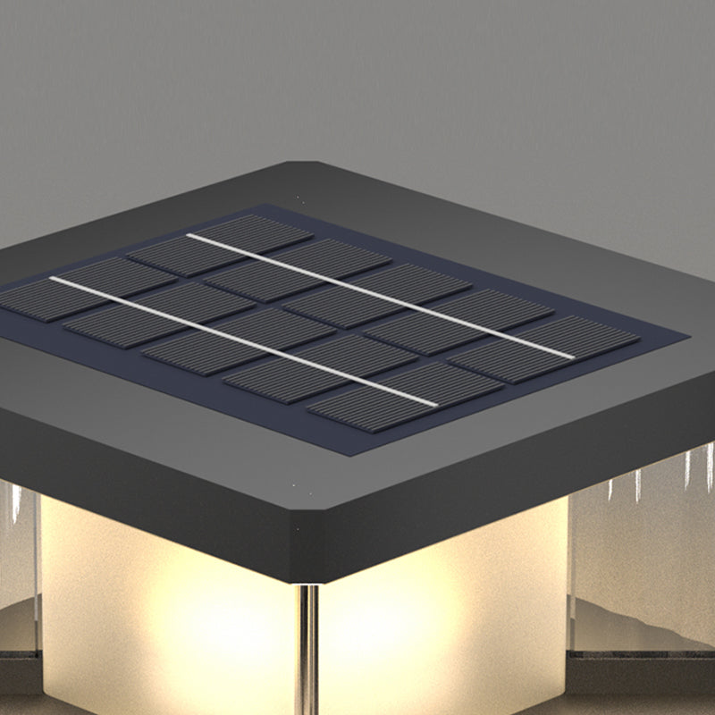 Metal Rectangular Shape Solar Pillar Lamp Modern 1 Light Outdoor Lights in Black