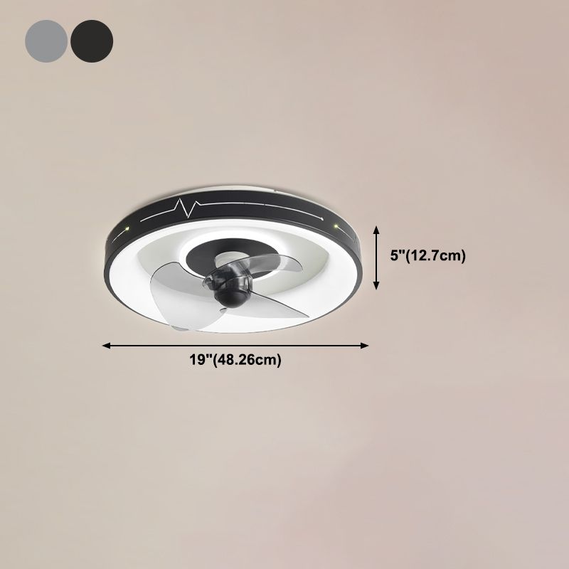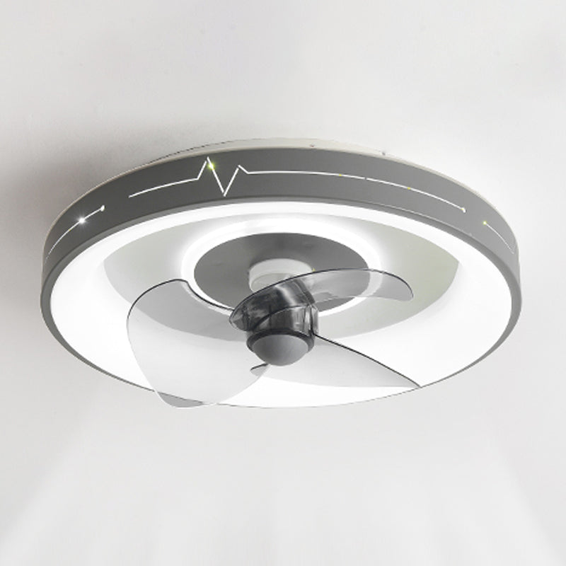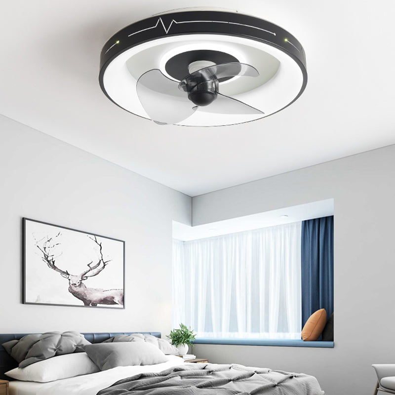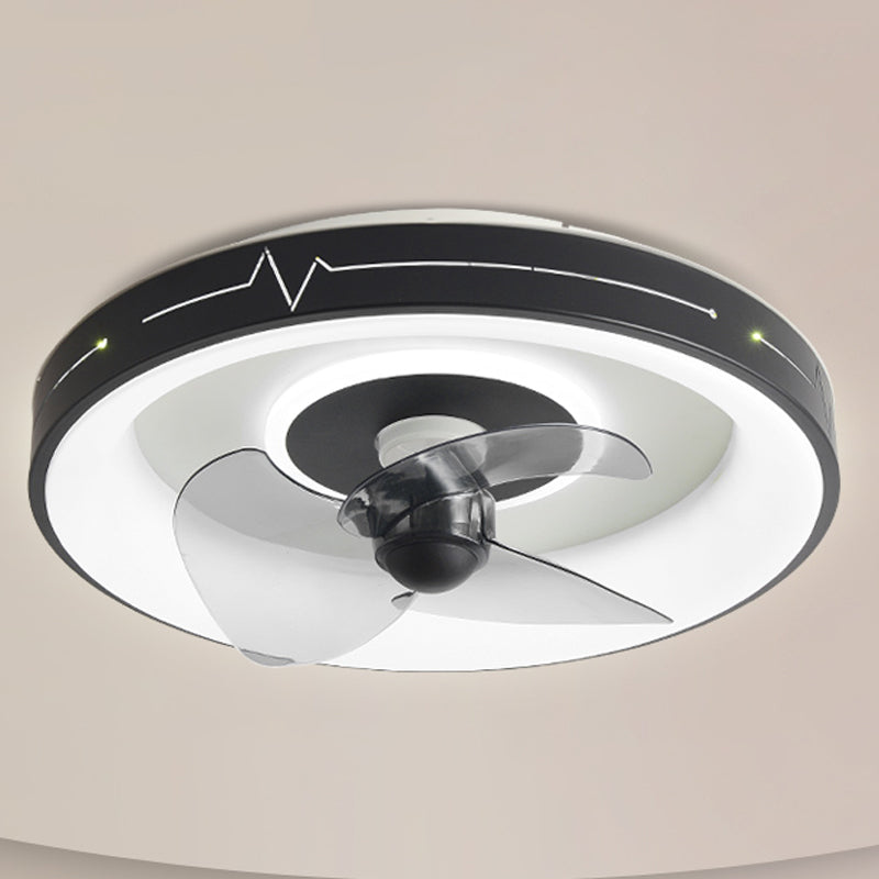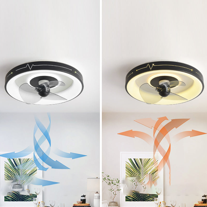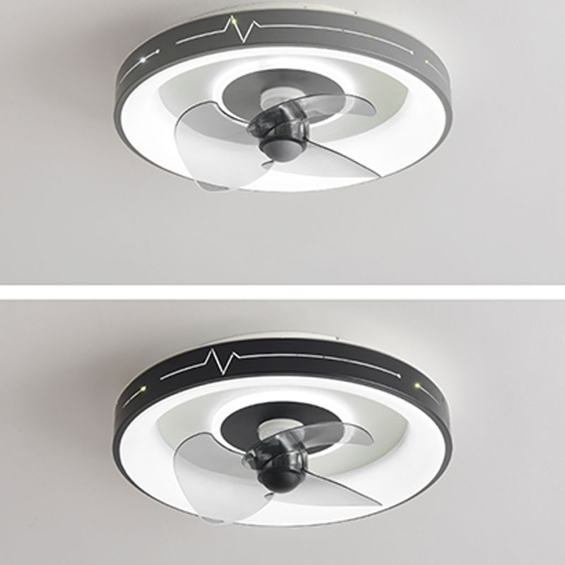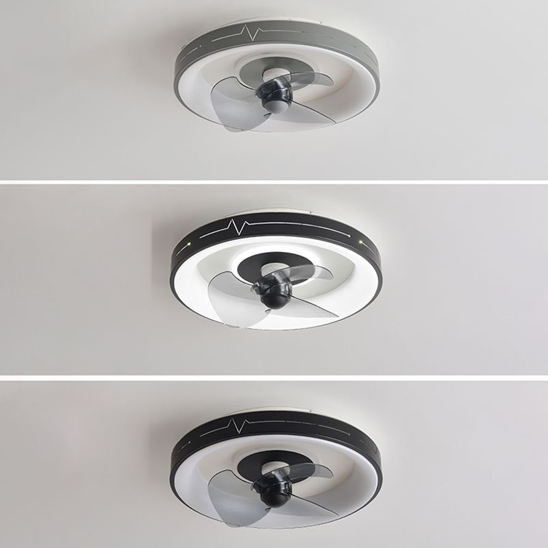 Metal Round Ceiling Fan Modern Style 2 Lights Flush Mount Lamp