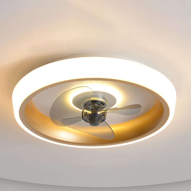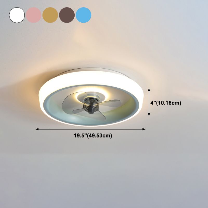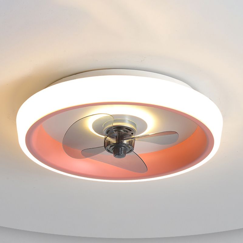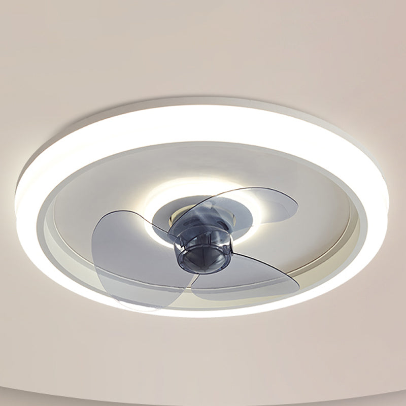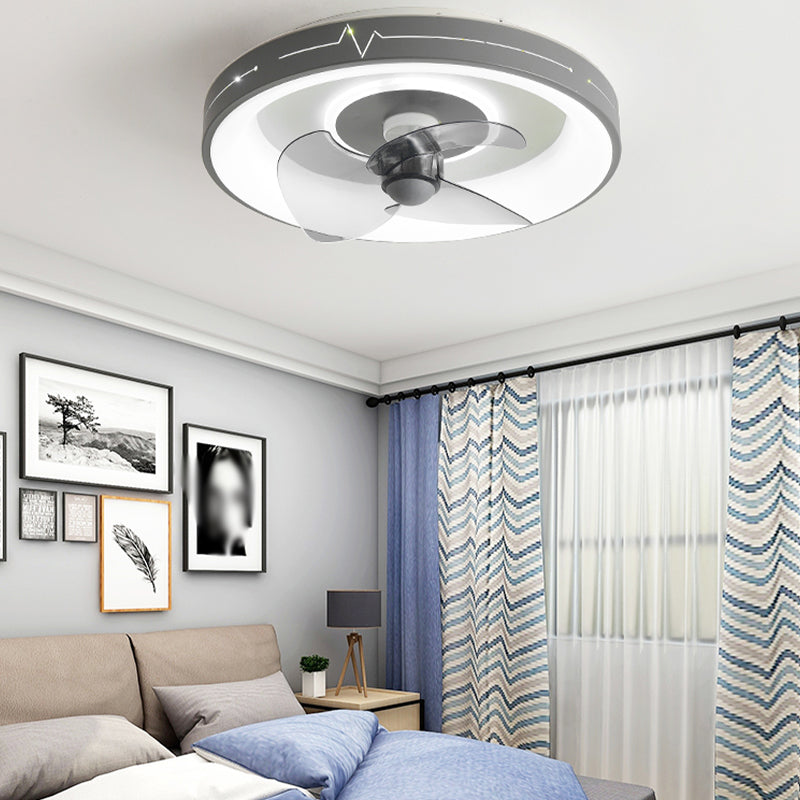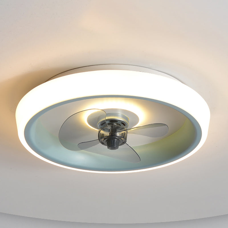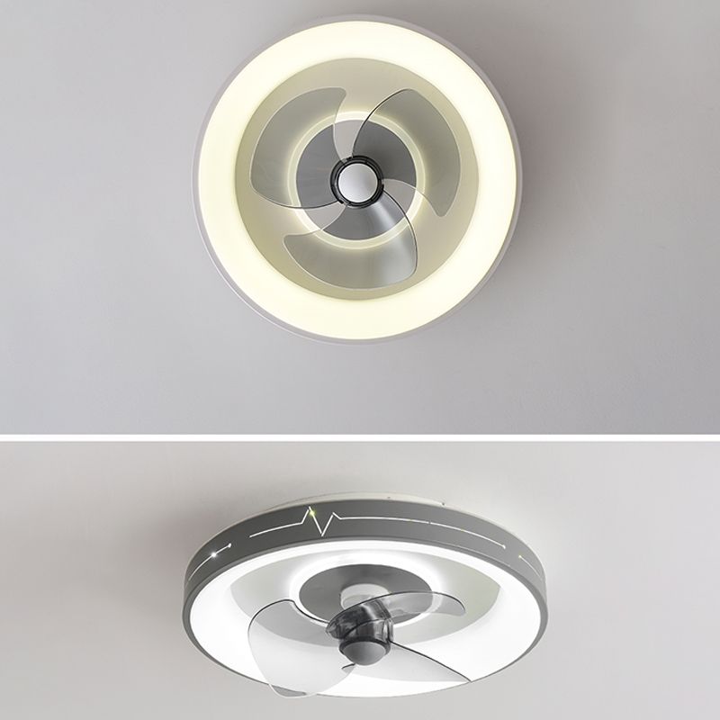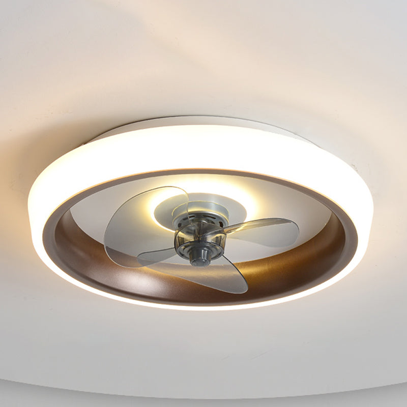 Metal Round Ceiling Fan Modern Style 2 Lights Flush Mount Lamp