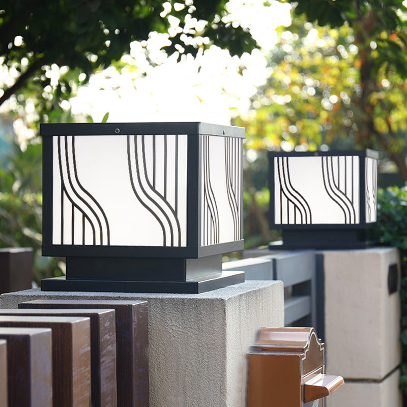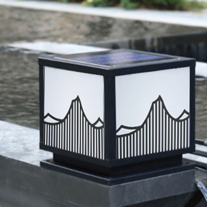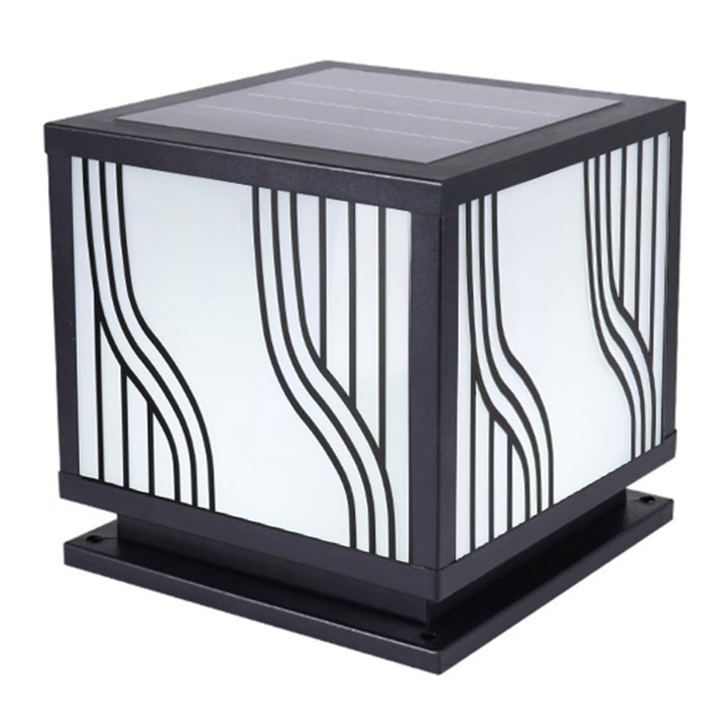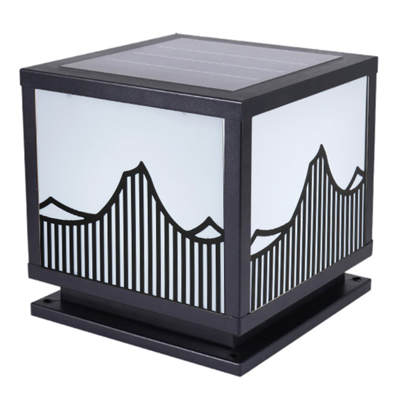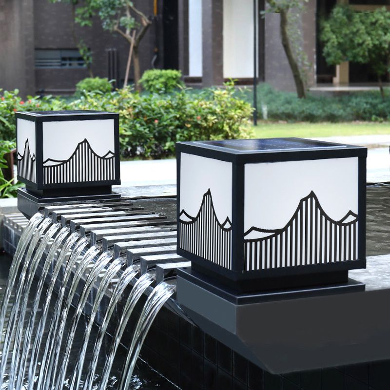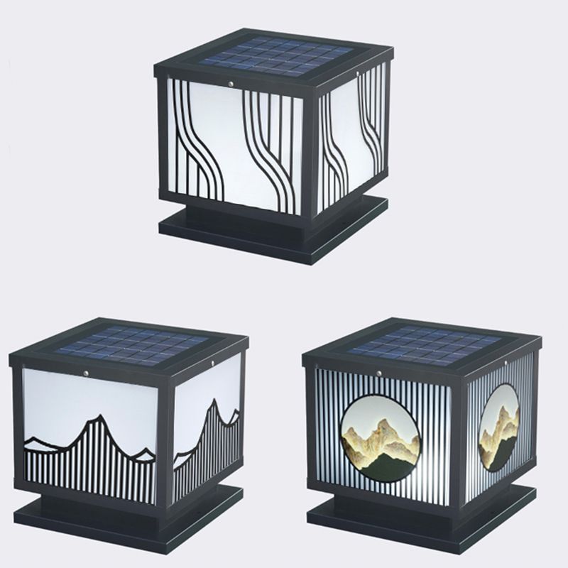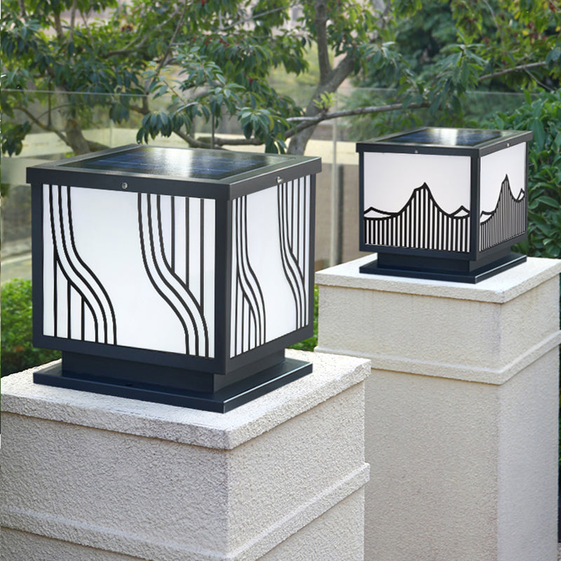 Metal Square Shape Outdoor Lights Modern Style 1-Light Solar Pillar Lamp