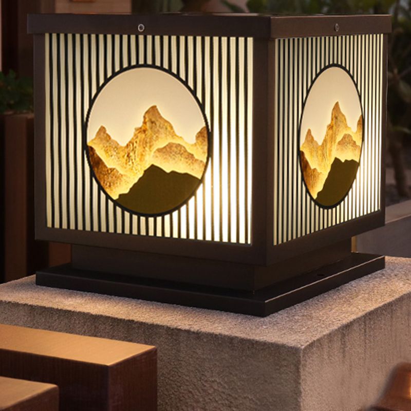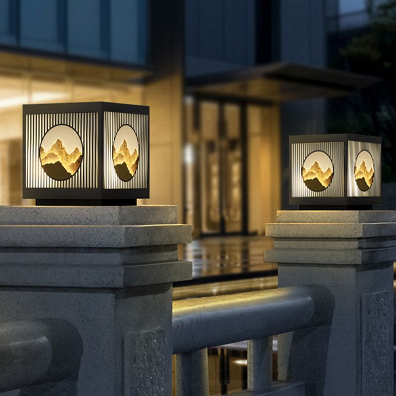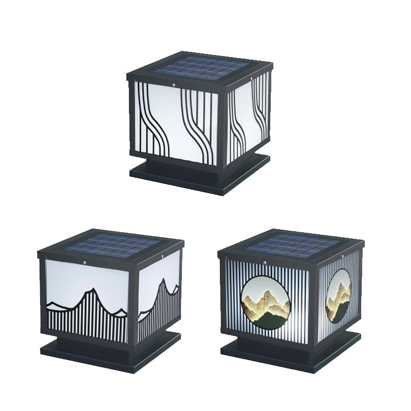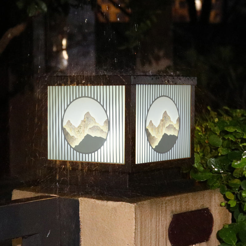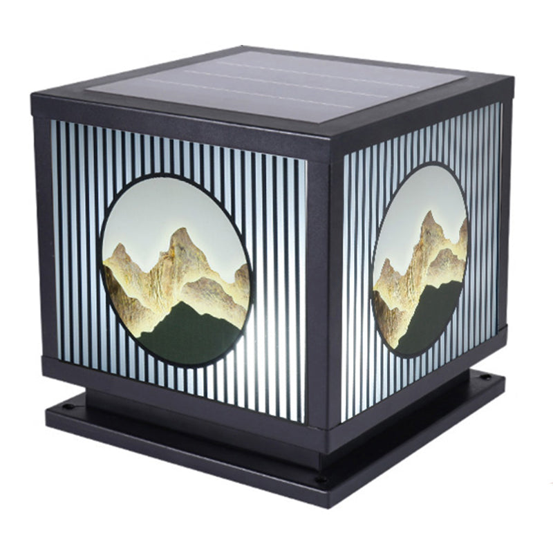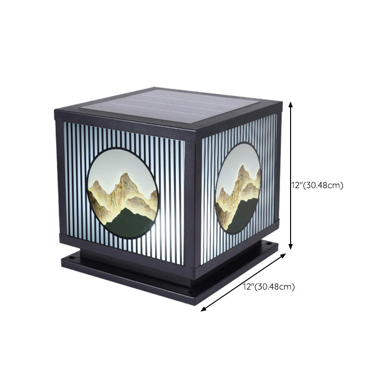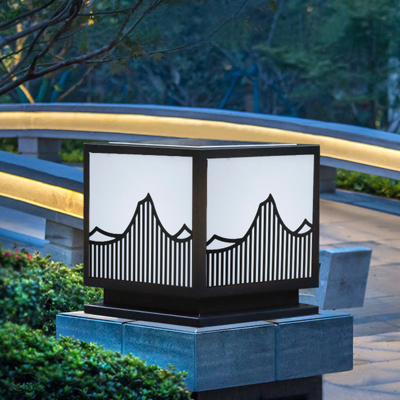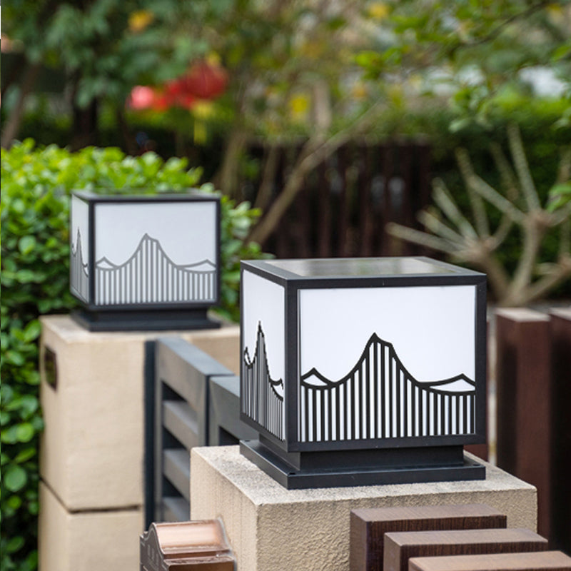 Metal Square Shape Outdoor Lights Modern Style 1-Light Solar Pillar Lamp