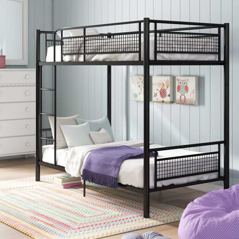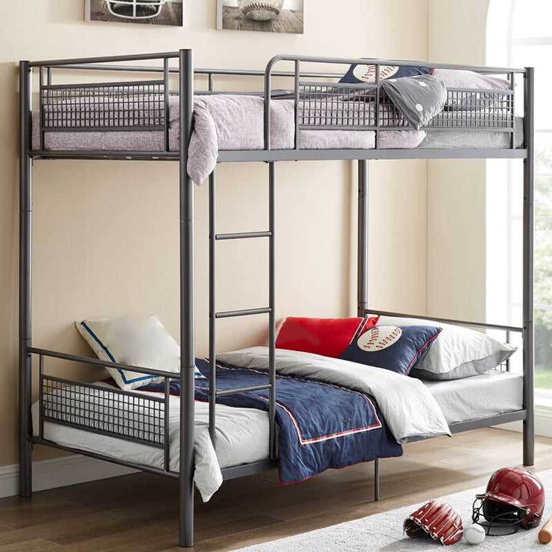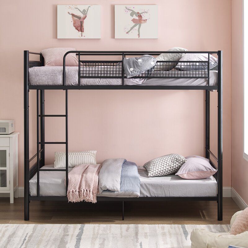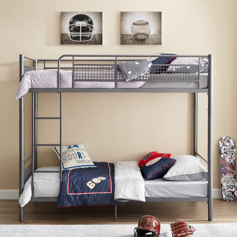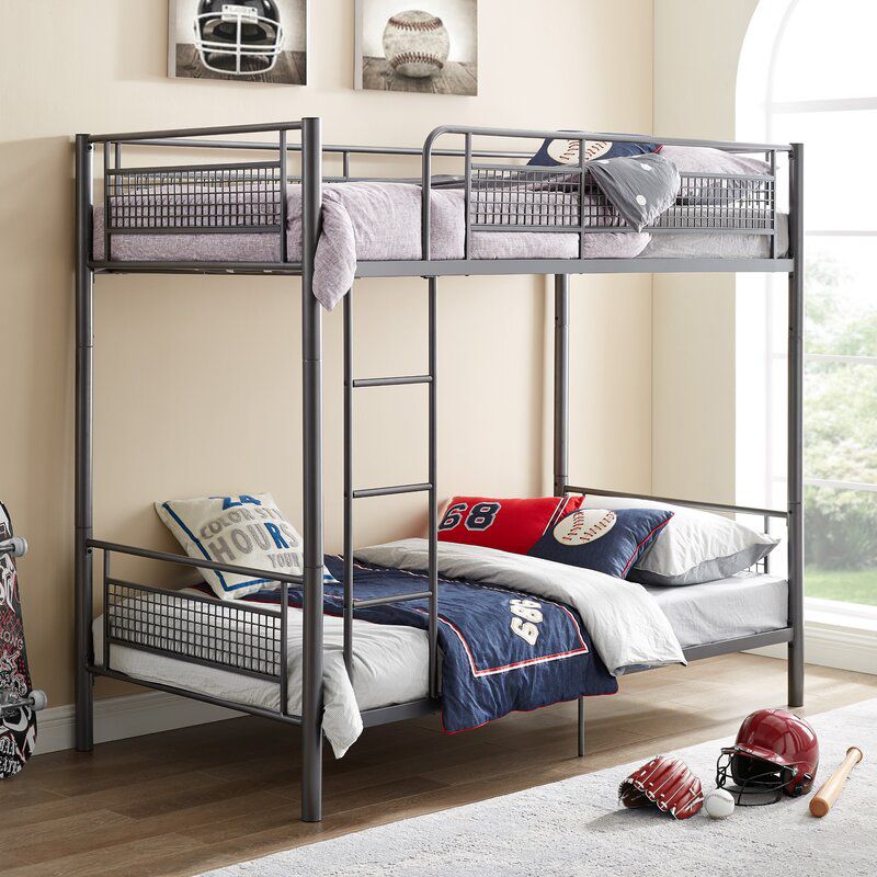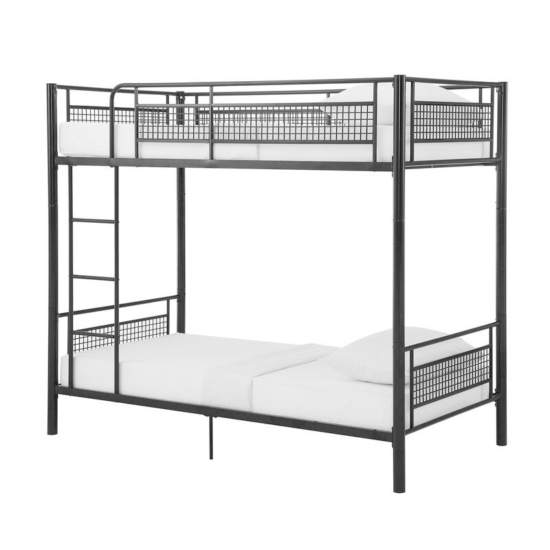 Metal Standard Bunk Bed 74.8" H High Bunk Bed Frame with Built-In Ladder