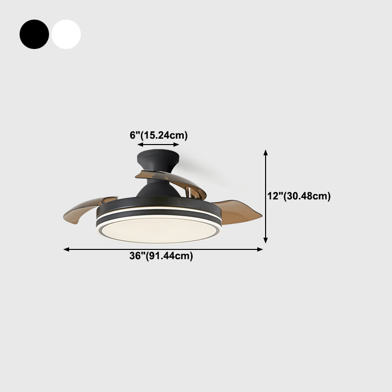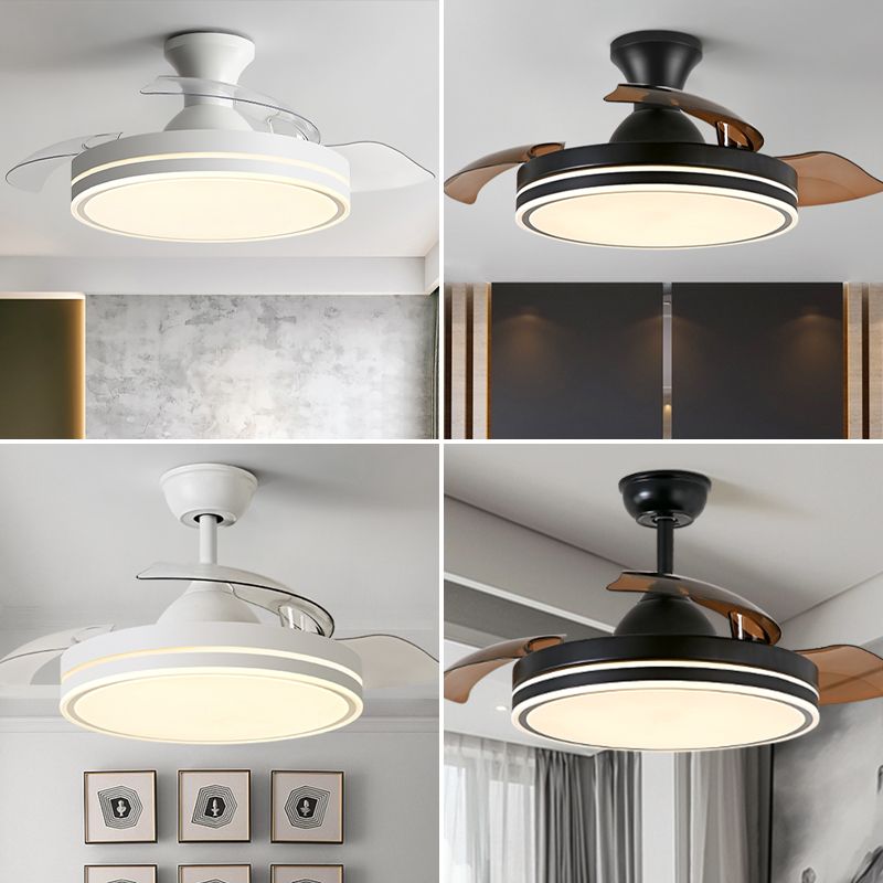 Metallic Drum Hanging Fan Lamp Frequency Conversion Modern LED Semi Flush Mount Lighting