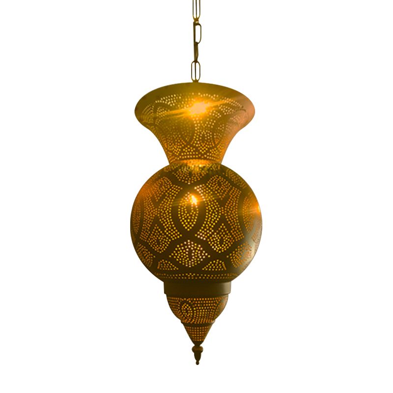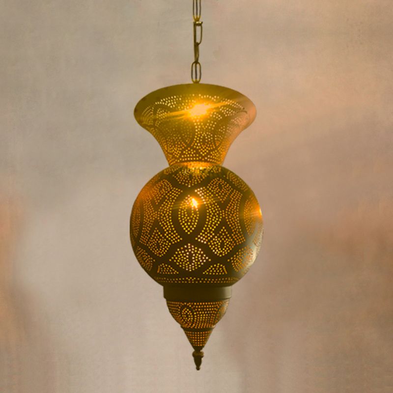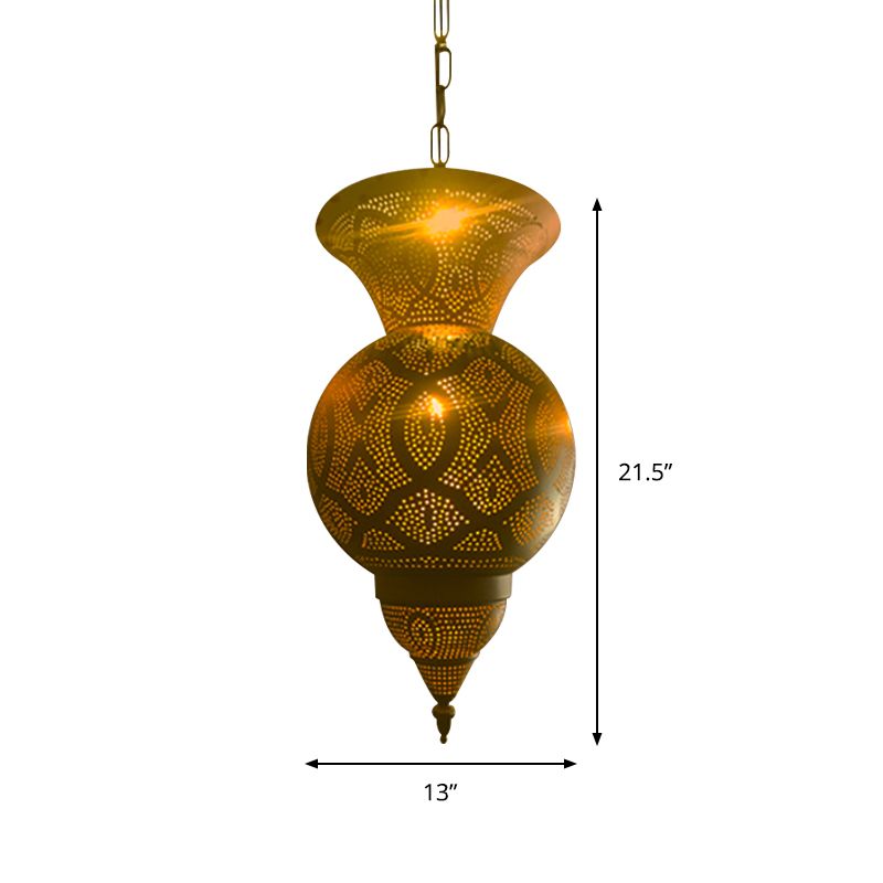 Metallic Vase/Gourd Pendant Lamp Vintage 3-Head Coffee House Hanging Chandelier in Brass