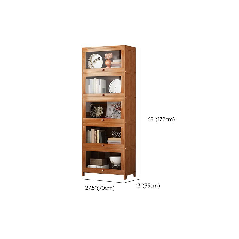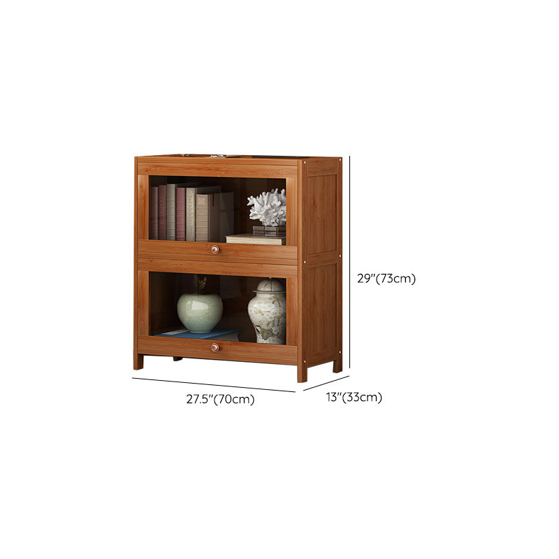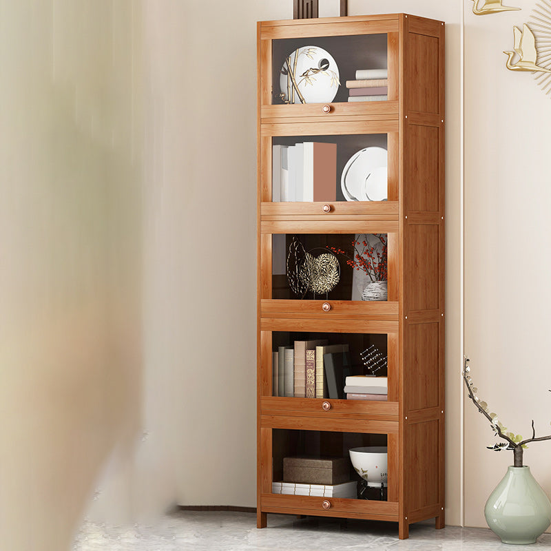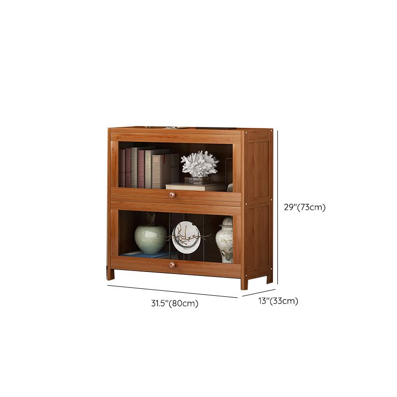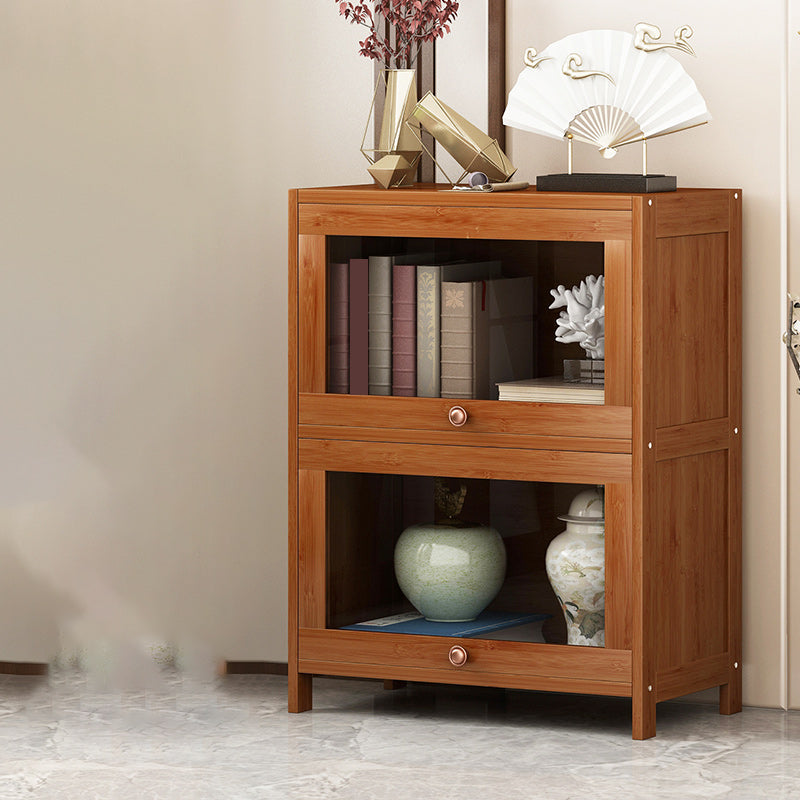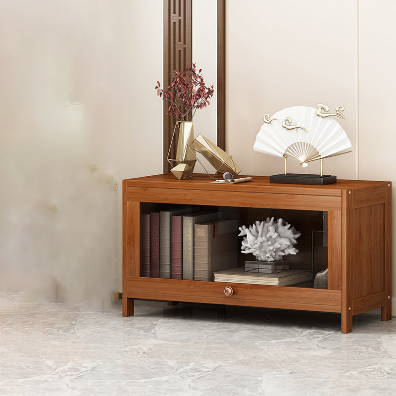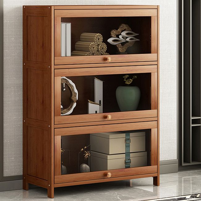 Mid Century Modern Bamboo Accent Cabinet in Brown with Glass Paned