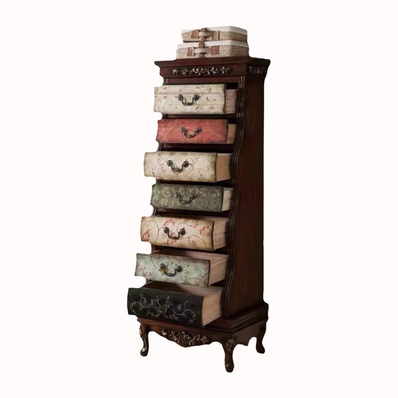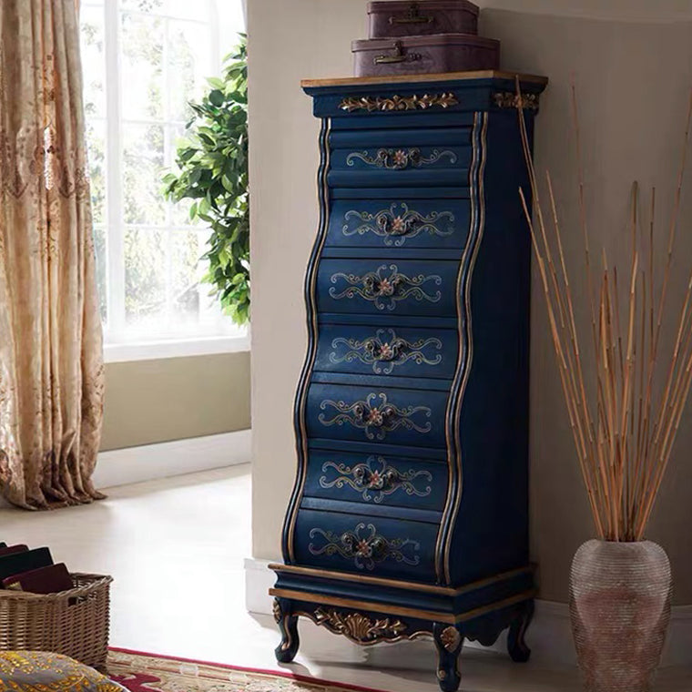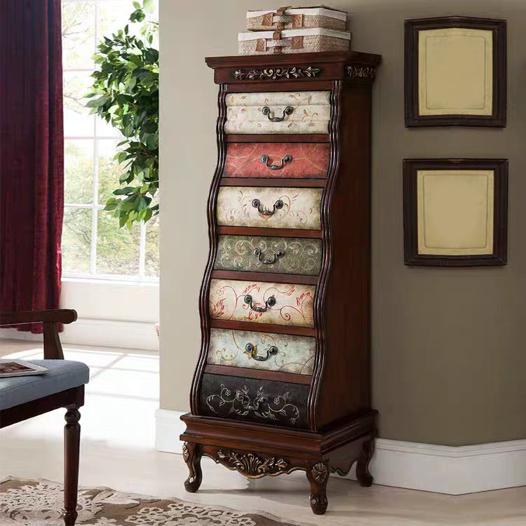 Mid-century Modern Distressed Wood Chest 7- Drawer Rectangle Accent Chest
