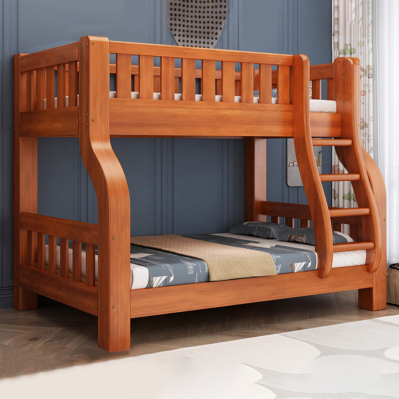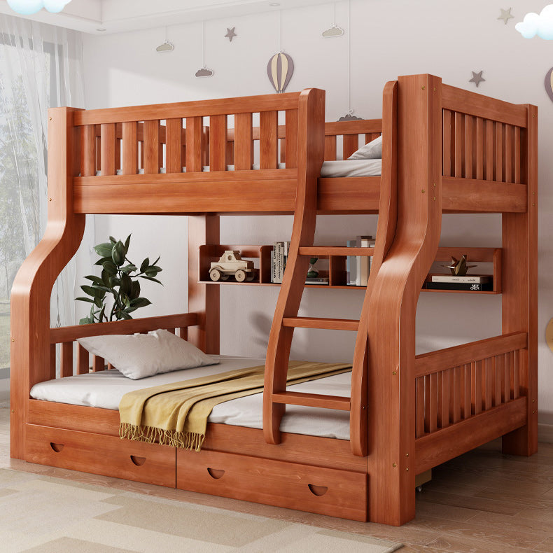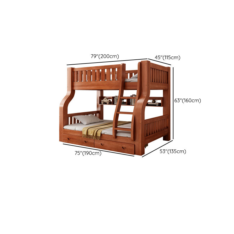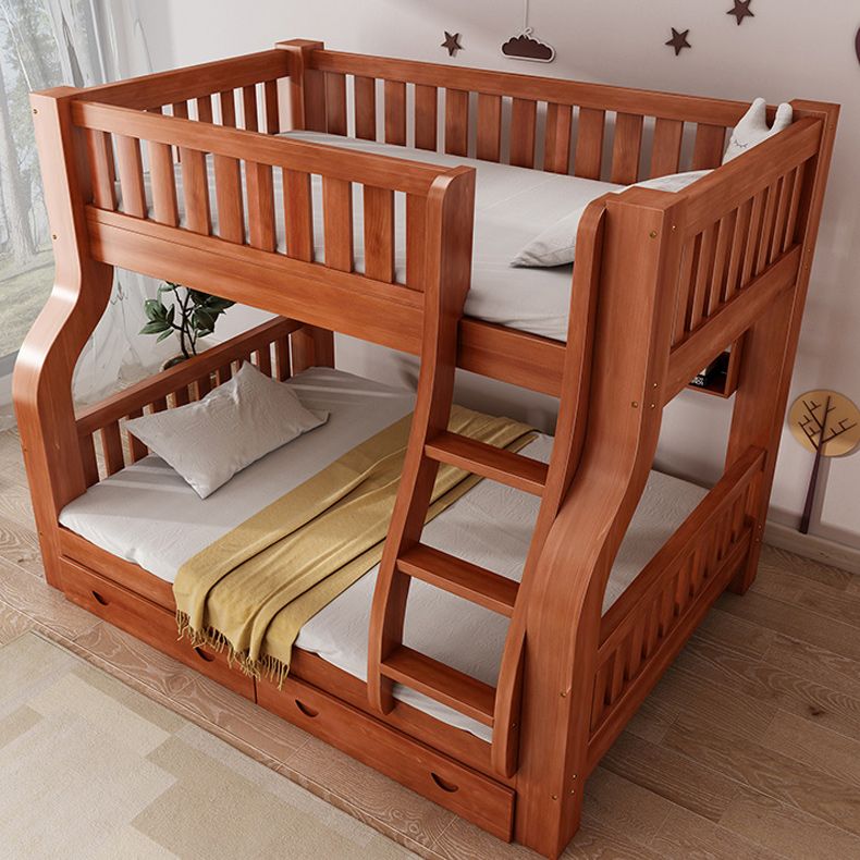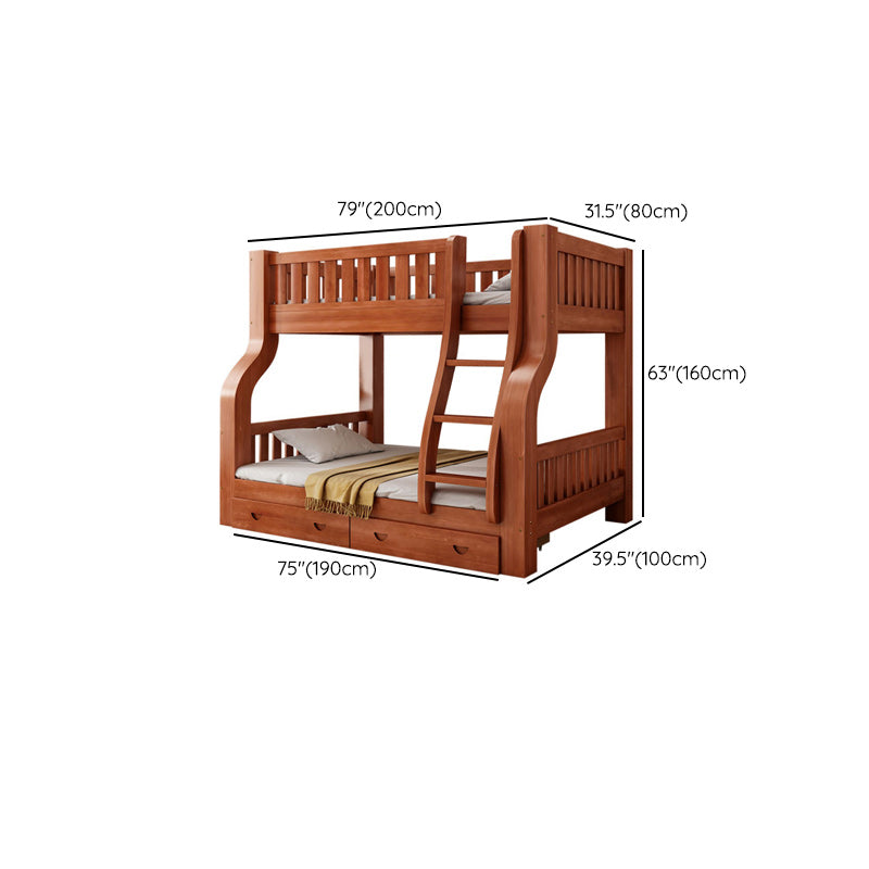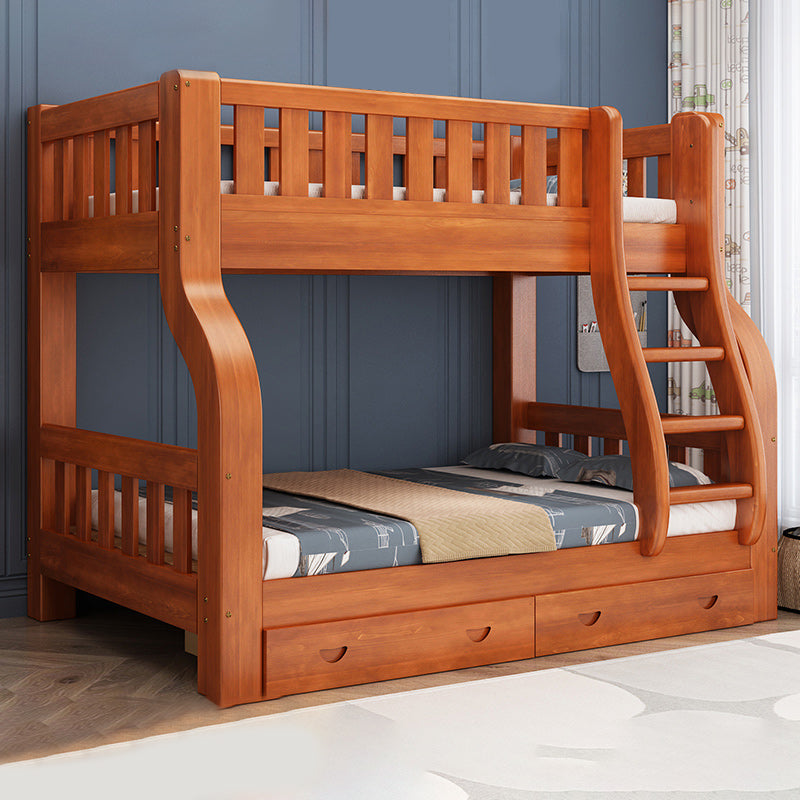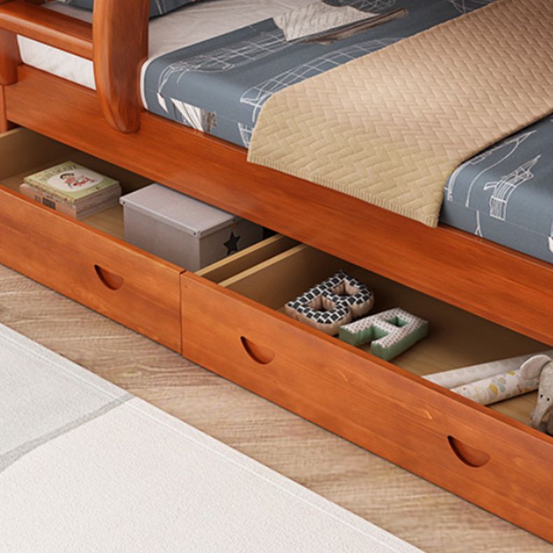 Mid-Century Modern Kids Bed Storage Solid Wood Bunk Bed with Guardrail
