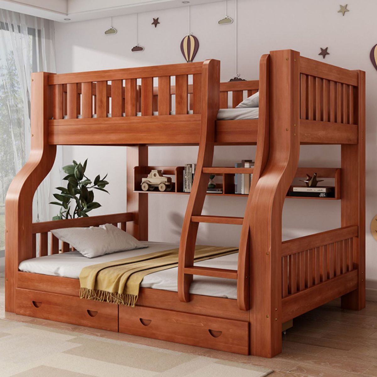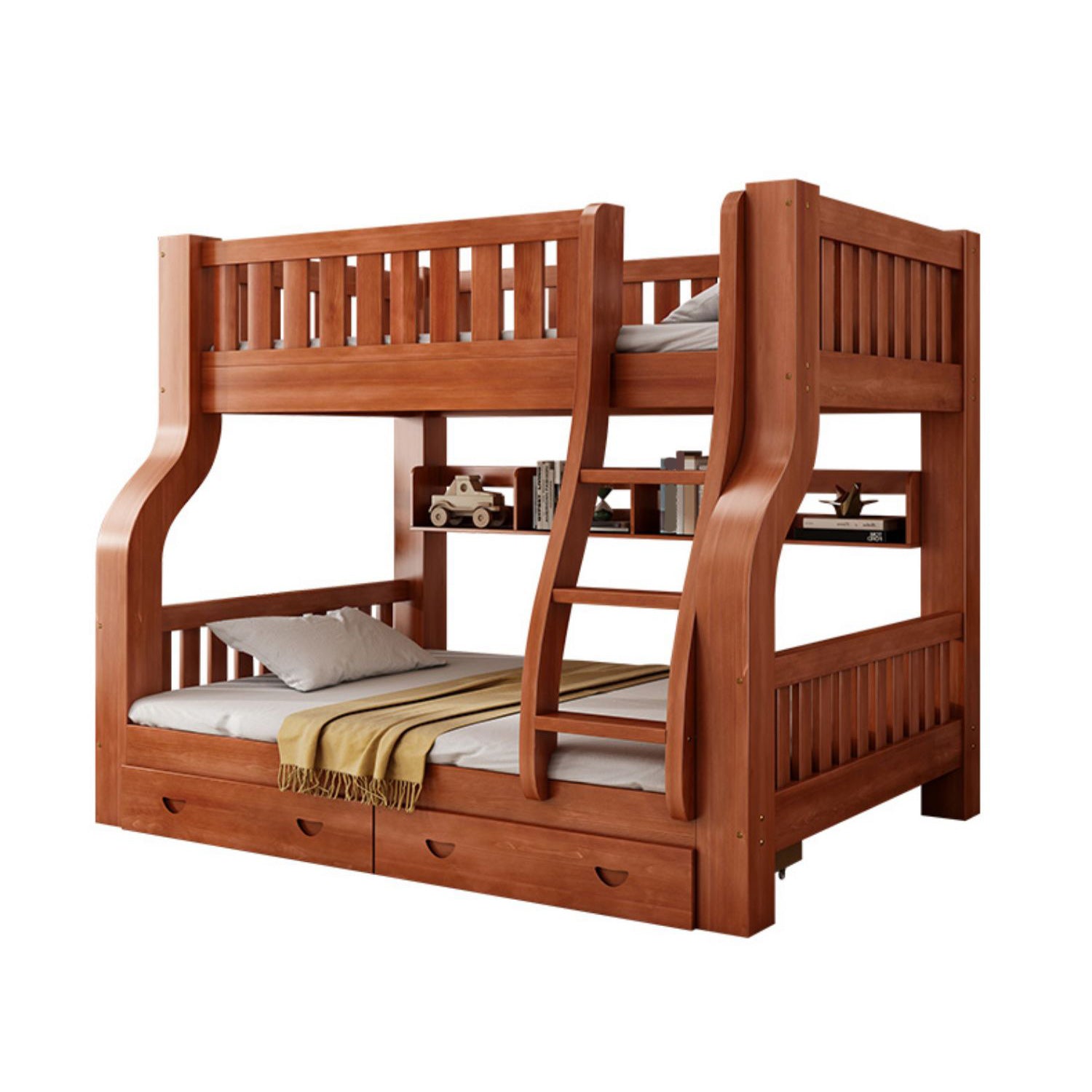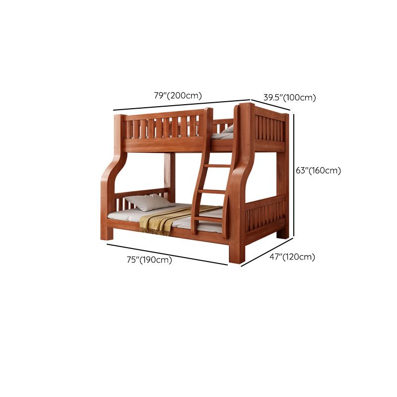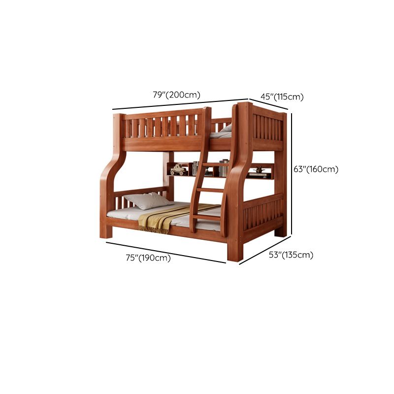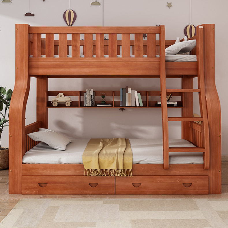 Mid-Century Modern Kids Bed Storage Solid Wood Bunk Bed with Guardrail