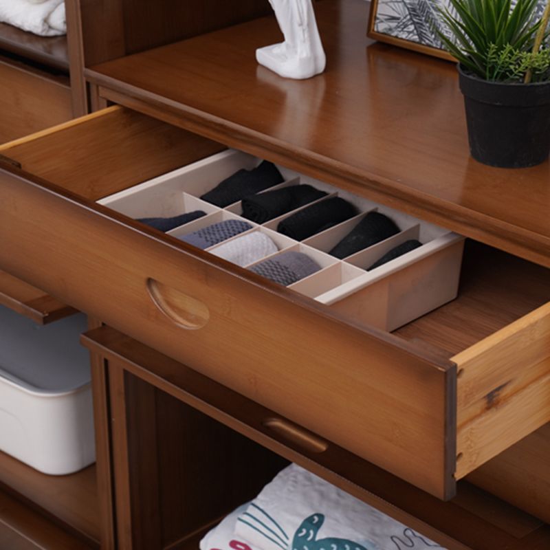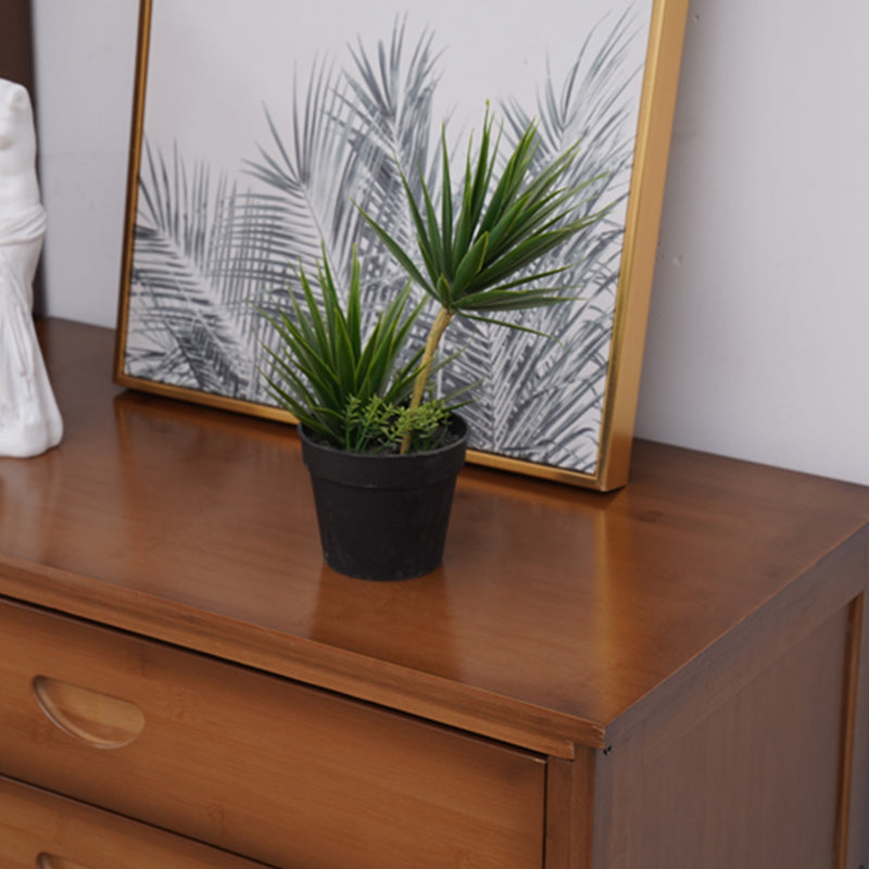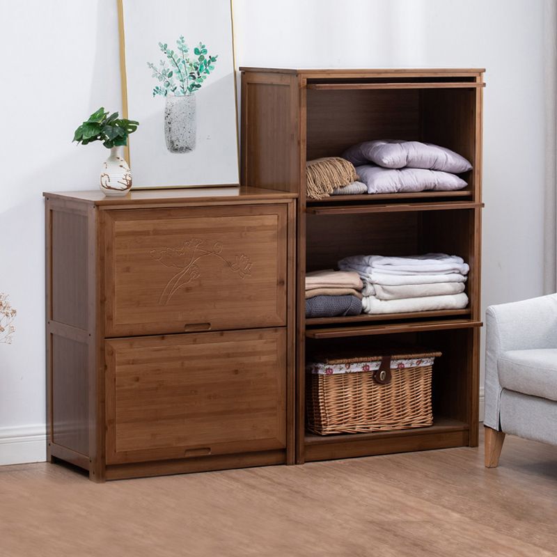 Mid Century Modern Rectangle Cabinet Brown Accent Cabinet with Doors in Solid Wood