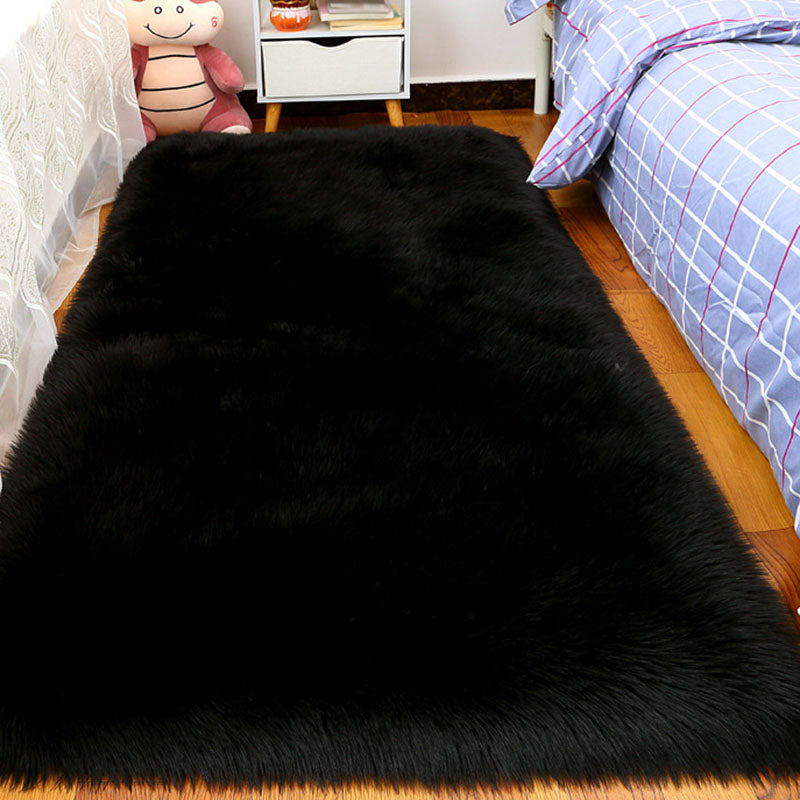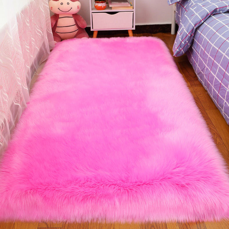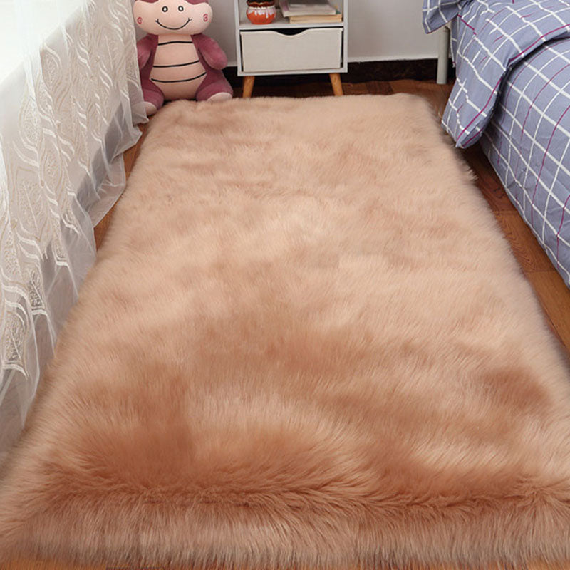 Minimalist Area Rug Simple Solid Color Carpet Polyester Shag Rug with Non-Slip Backing