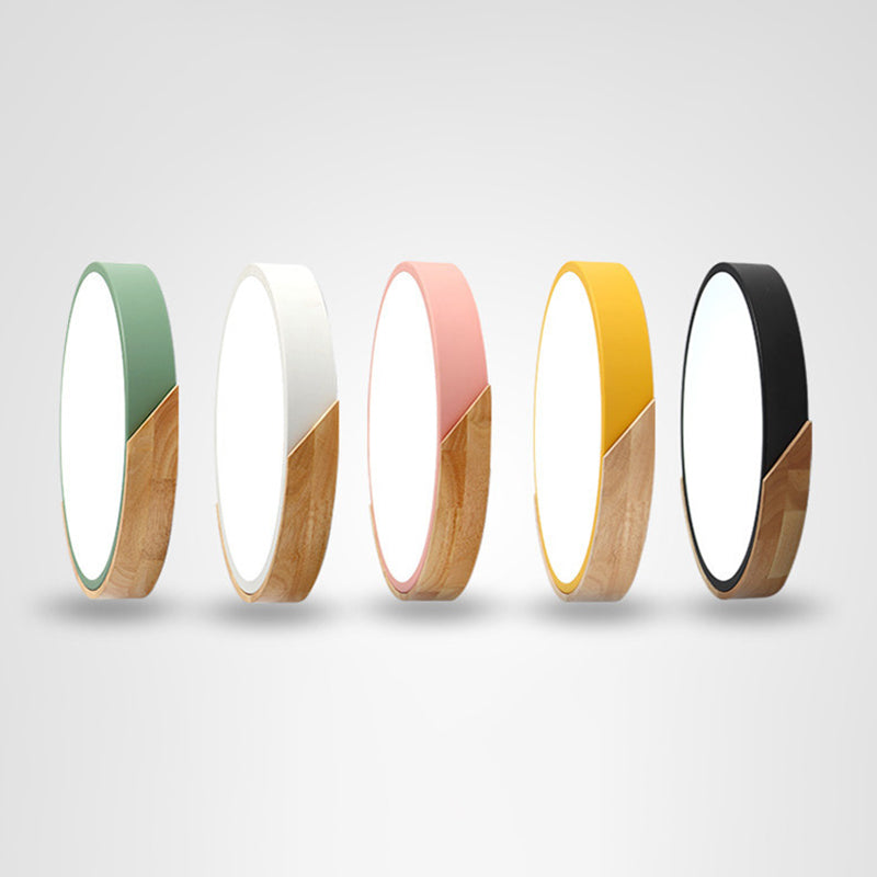 Minimalist Indoor Ceiling Light Fixture, Macaroon Flat Metal and Wood Ceiling Flush Mount Lights