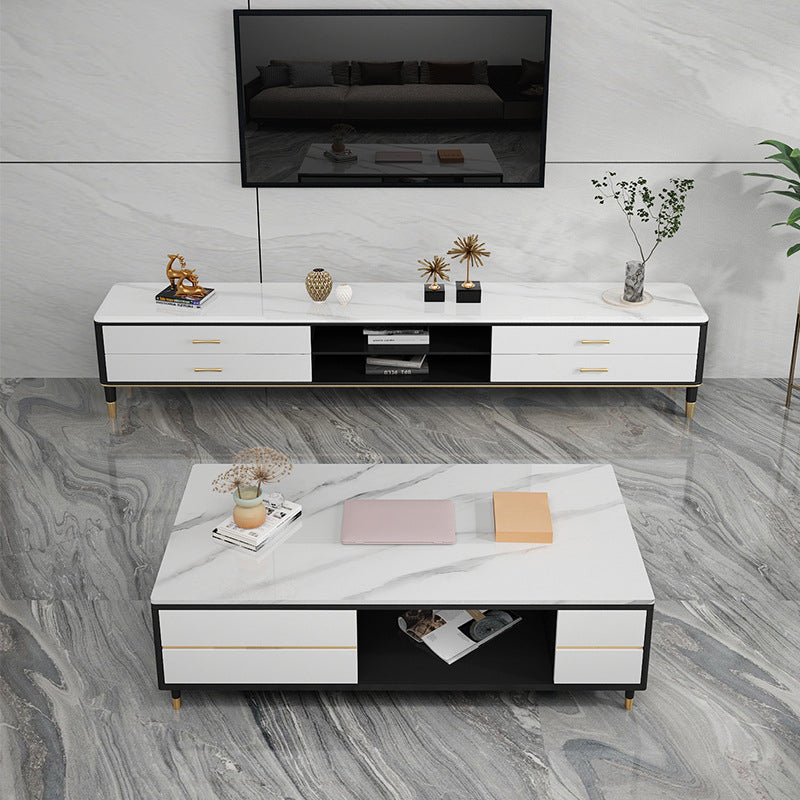 Modern 16" W TV Media Stand Stone Open Shelving TV Stand Console with Drawers