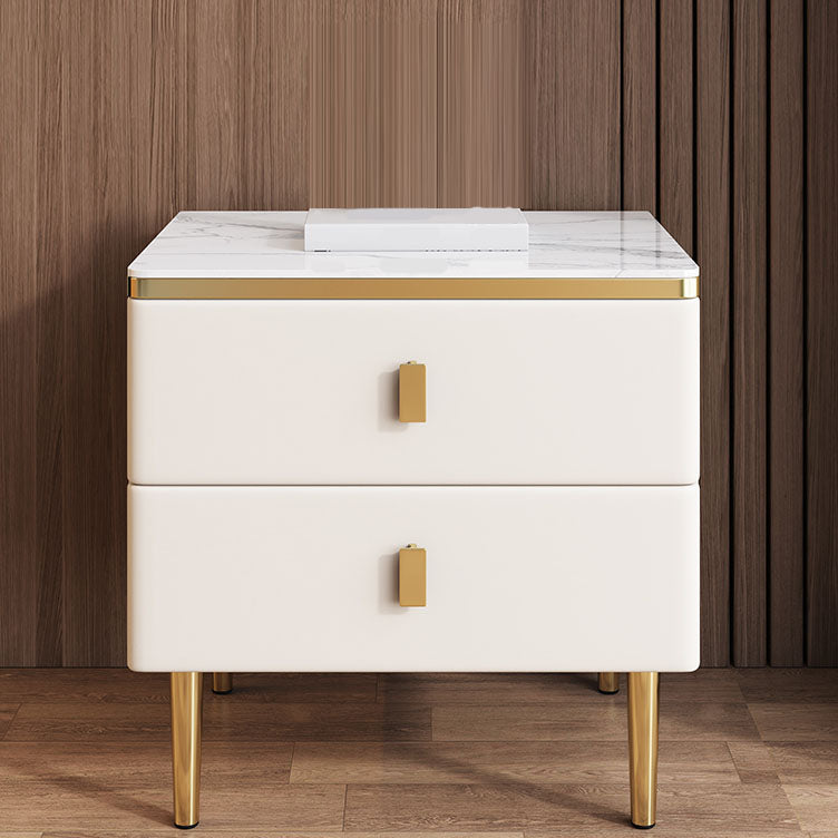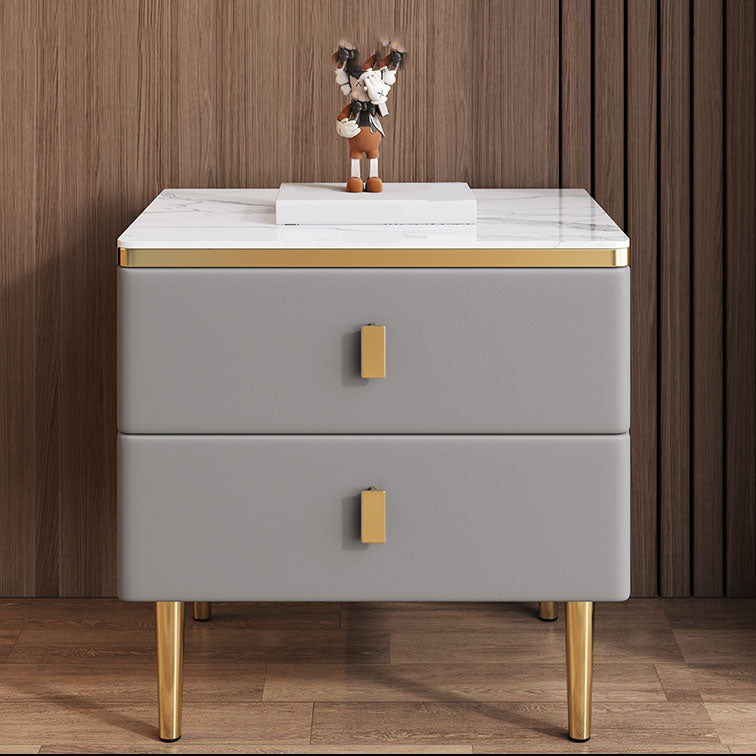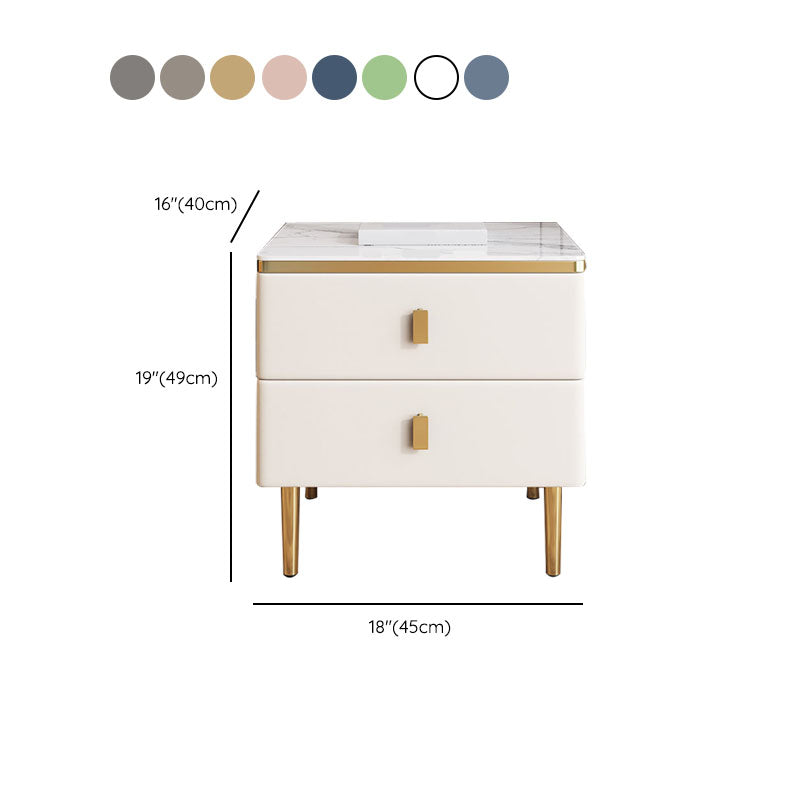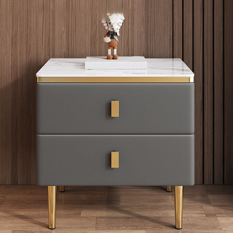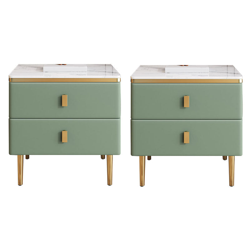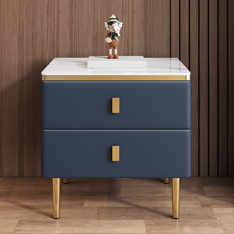 Modern 2 Drawers Wood Nightstand Slate Table Top Kids Bedside Table