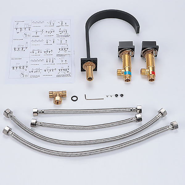 Modern 3 Holes Faucet Solid Color Knob Handle Gooseneck Widespread Faucets for Bathroom