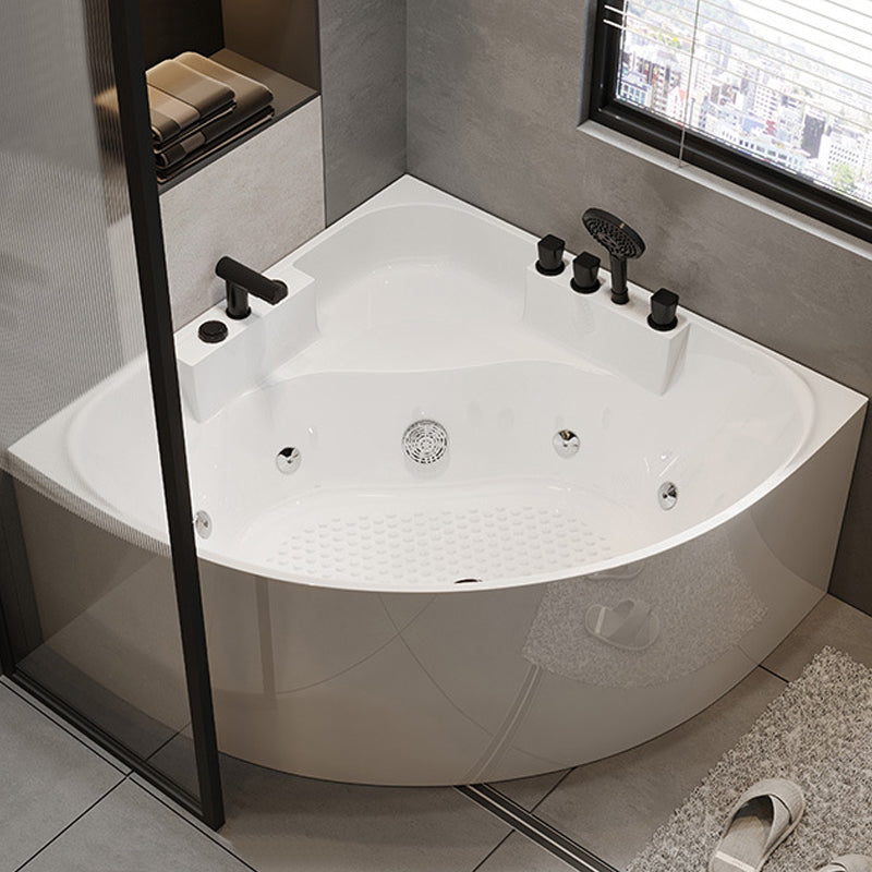 Modern Acrylic Corner Bath Soaking Seat Included Bathtub in White