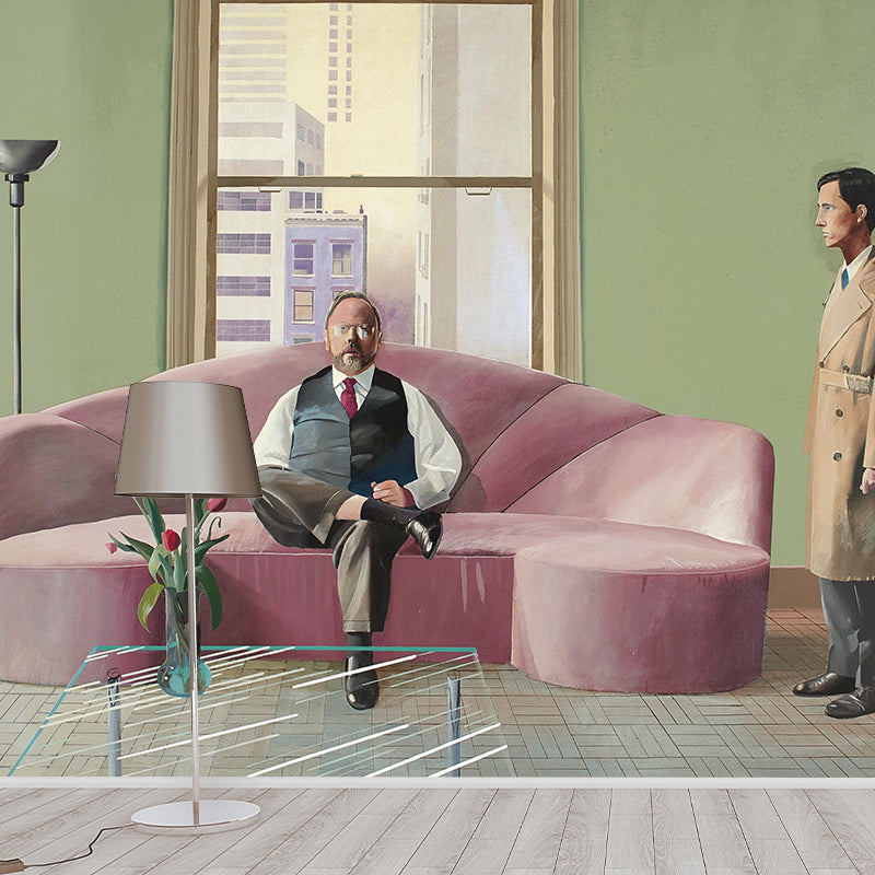 Modern Art Men Painting Murals for Living Room Custom Wall Decor in Purple-Green