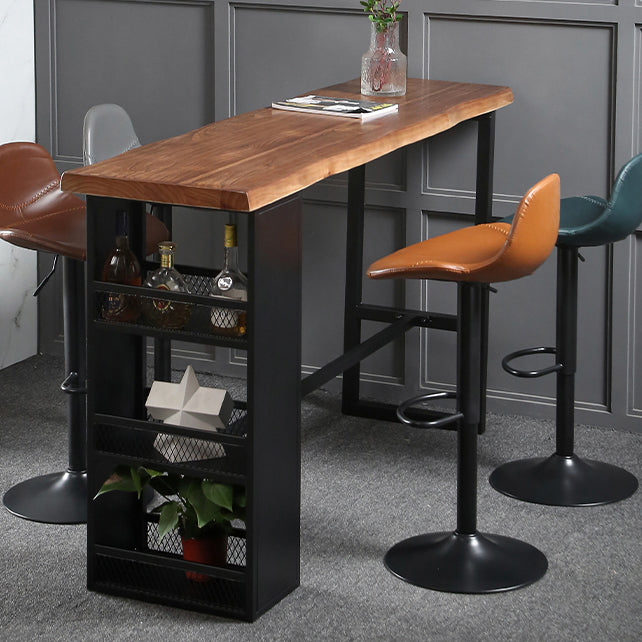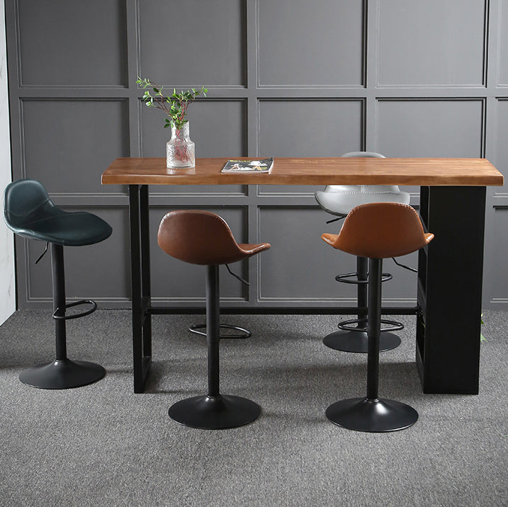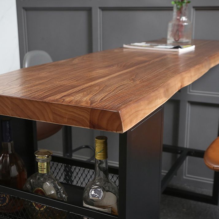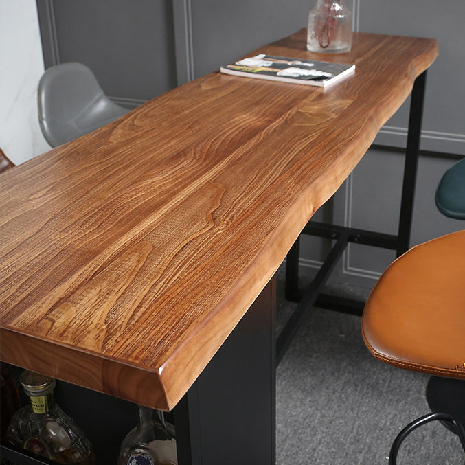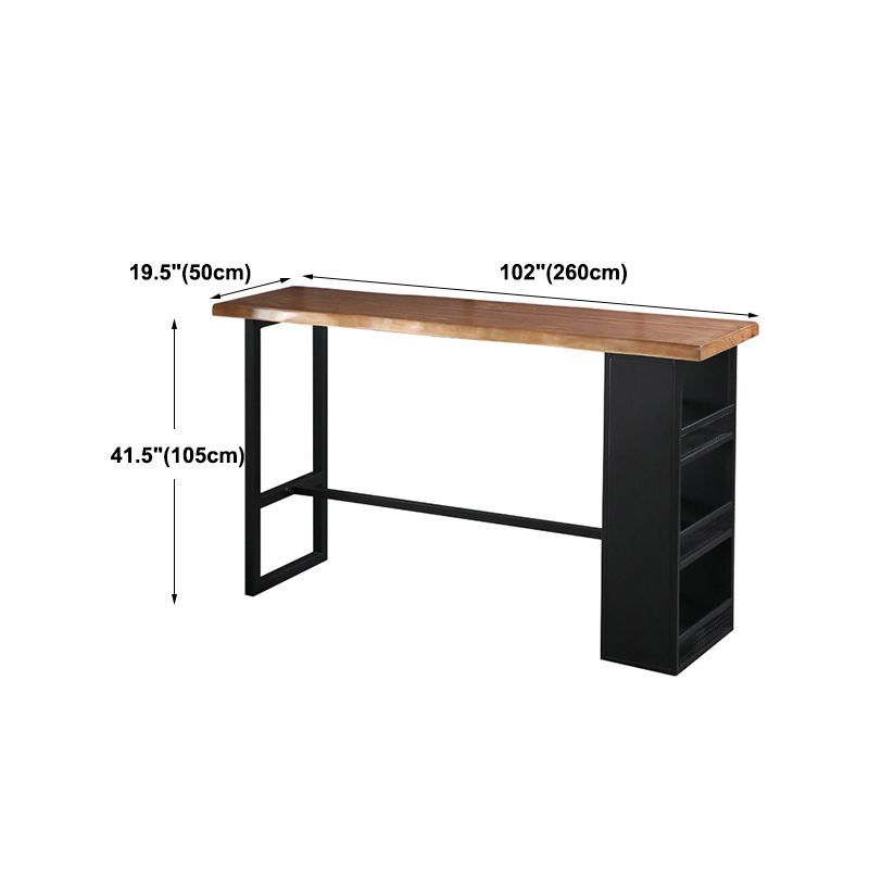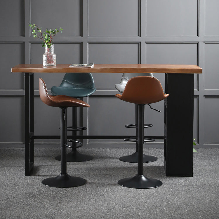 Modern Black Iron Bar Dining Table Rectangle Wood Indoor Bistro Table with Footrest