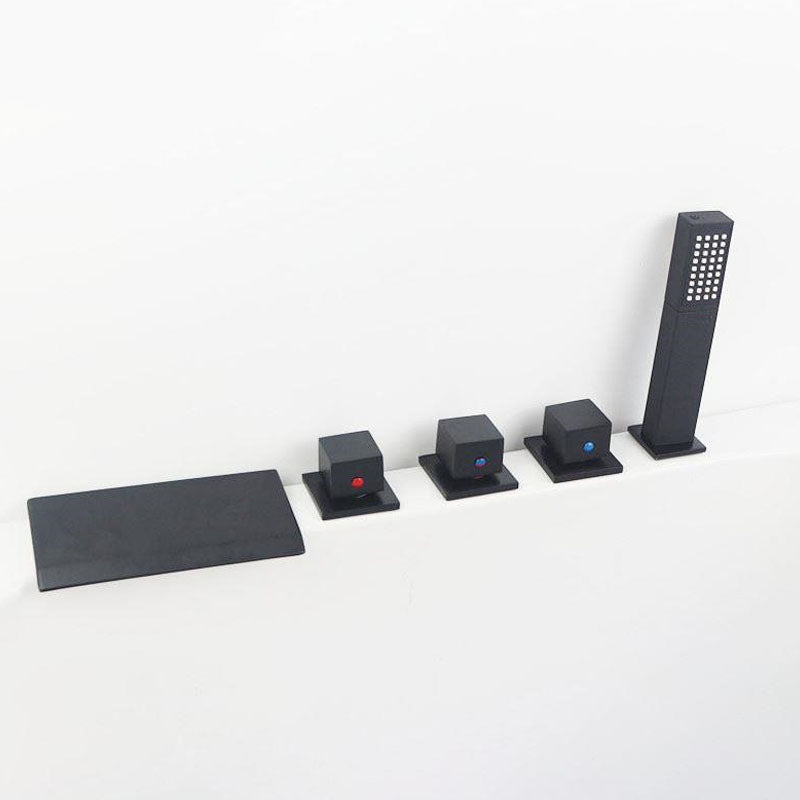 Modern Brass Tub Faucet in Black with 3 Handles Deck Mount Bathroom Faucet