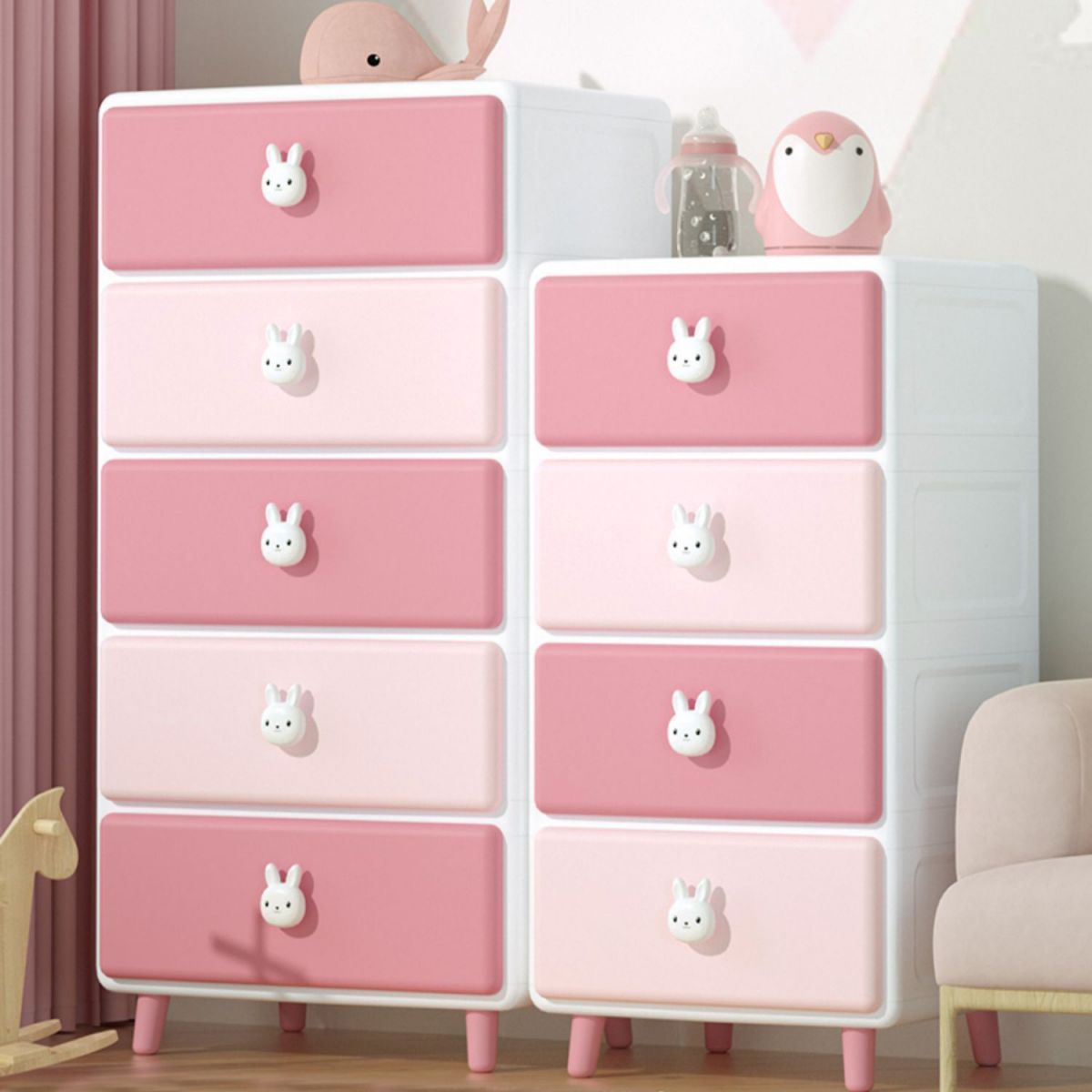 Modern Chest Dressers Plastic Kids Nightstand with 5/6 Drawers , 16.77 Inch W