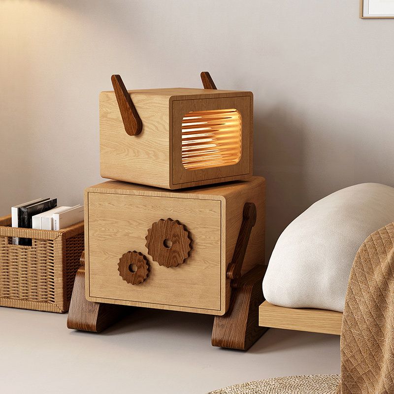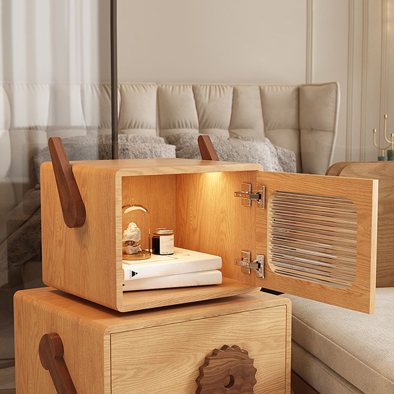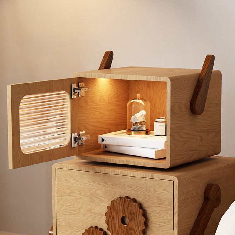 Modern & Contemporary Kids Bedside Table with Cabinet Light Wood Solid Wood