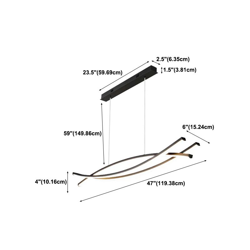 Modern Curved Hanging Island Light Metal LED Dining Room Island Ceiling Light