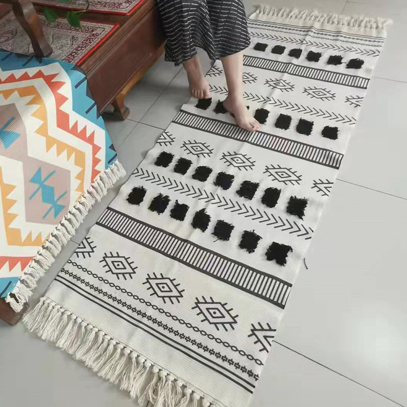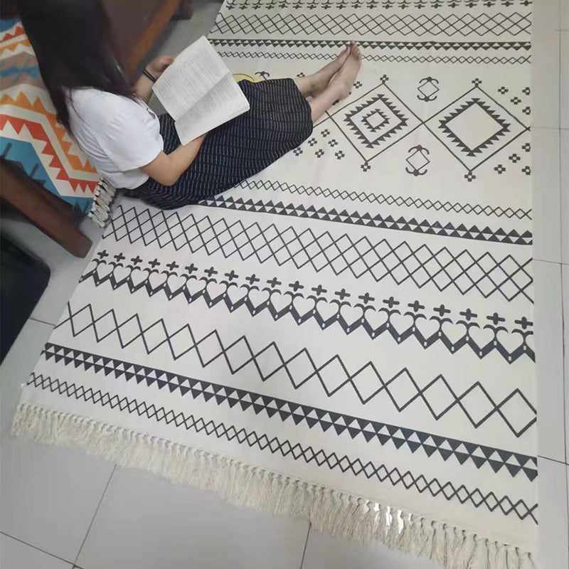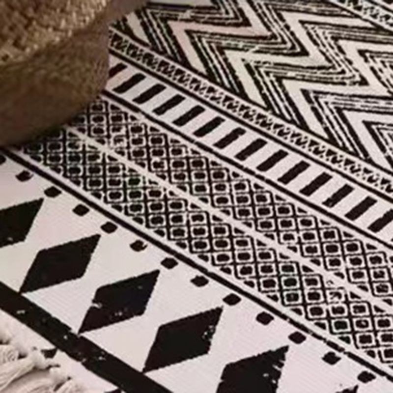 Modern Diamond Rug Polyester Black Rug Washable Rug for Home Decor