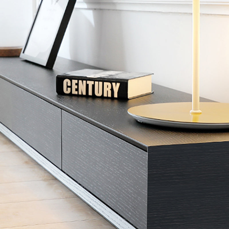 Modern Engineered Wood TV Stand Black Enclosed Storage TV Console with Drawers